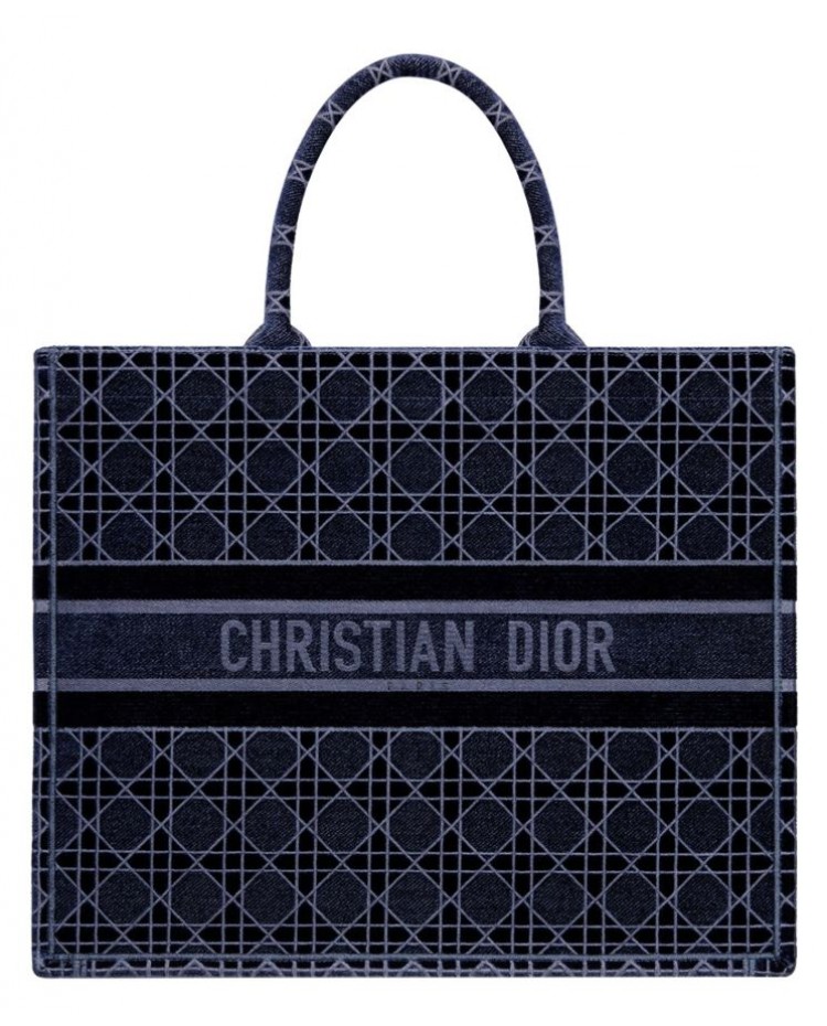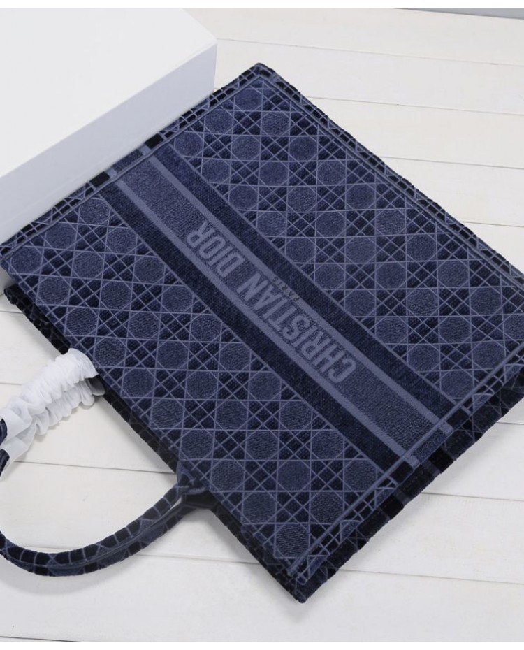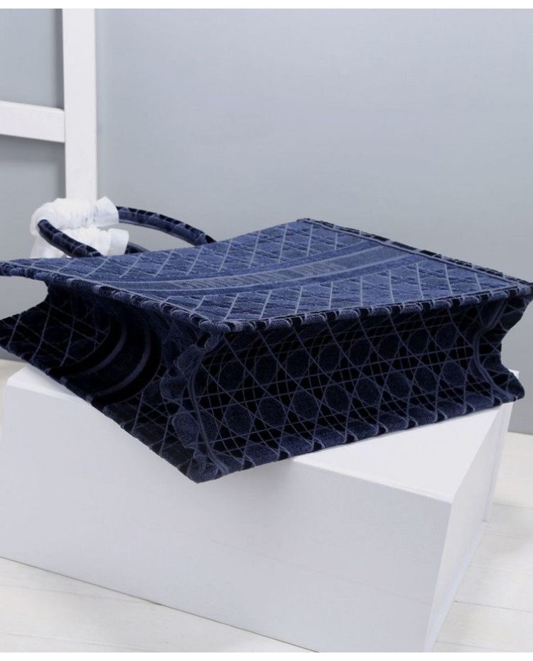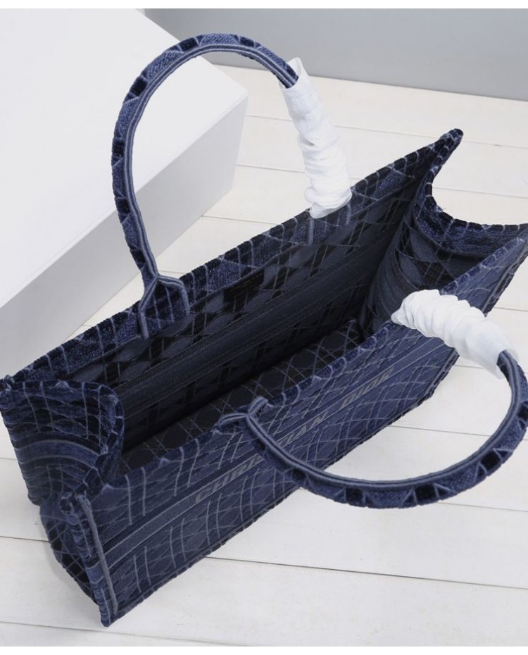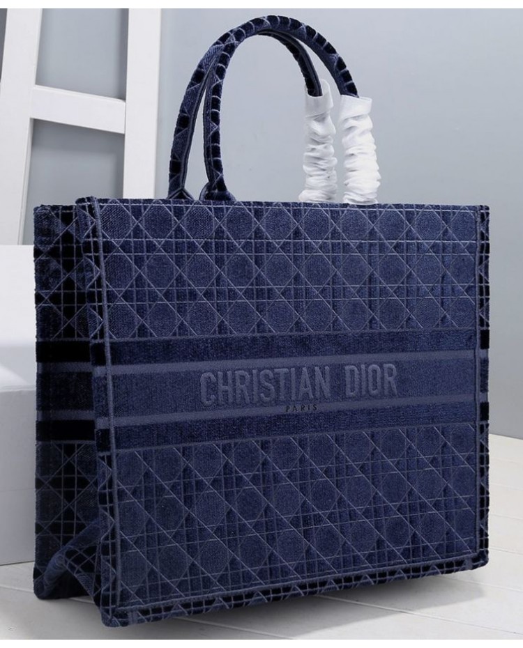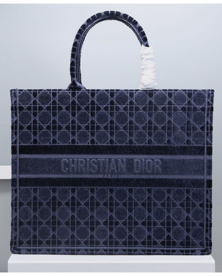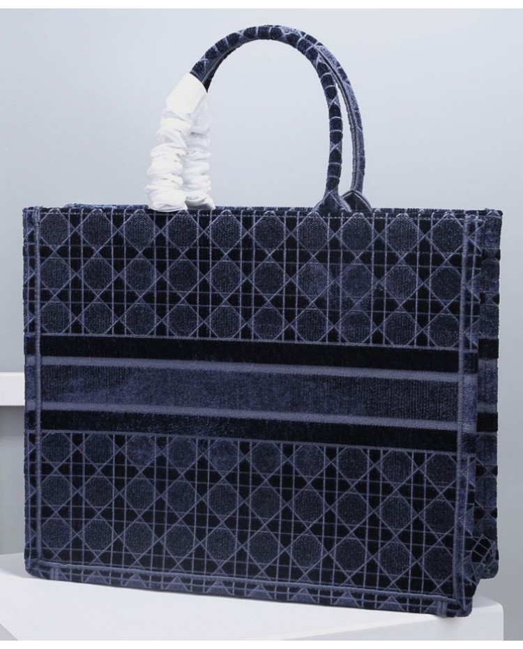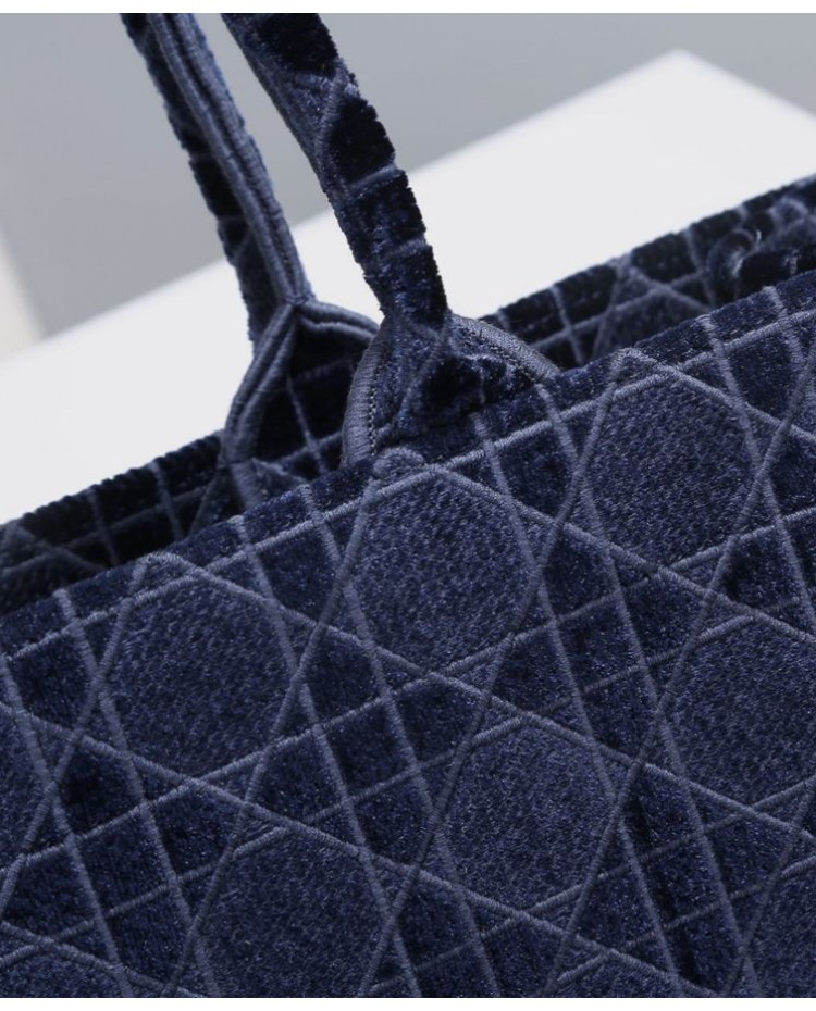 Christian Dior Cannage Embroidered Velvet Dior Book Tote Dark Blue
