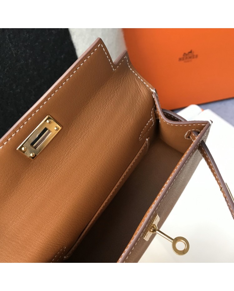 Hermes mini kelly 20cm Brown