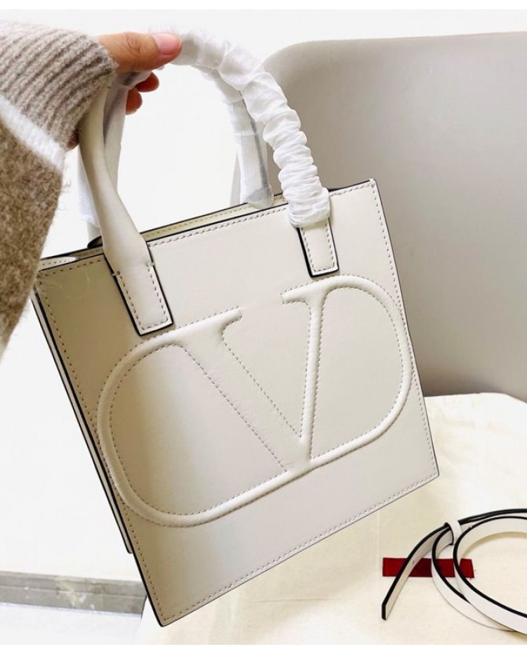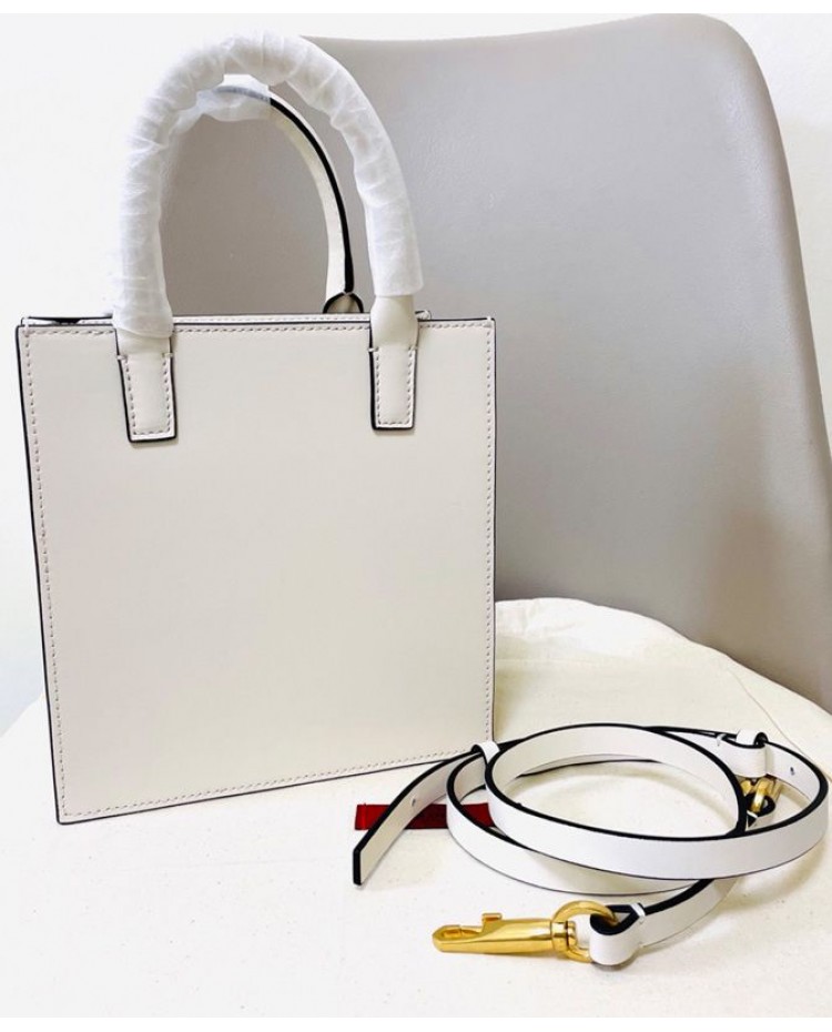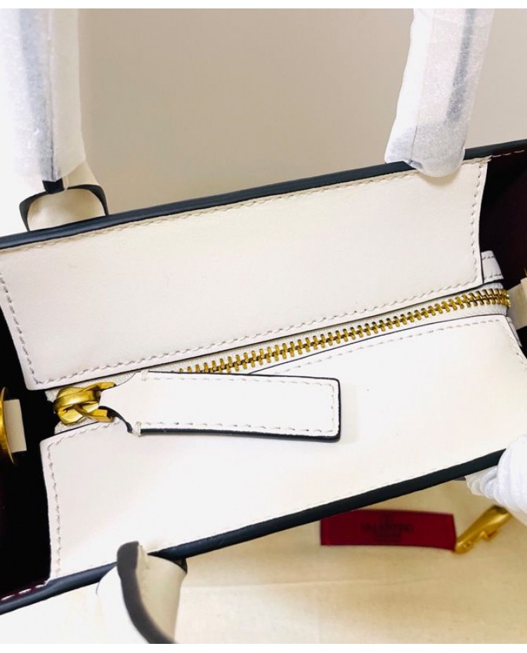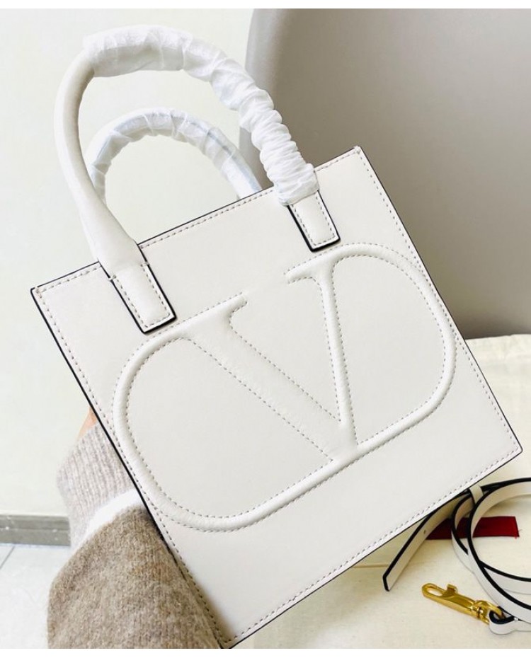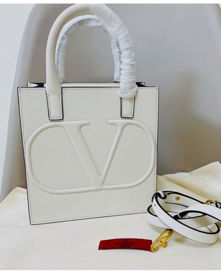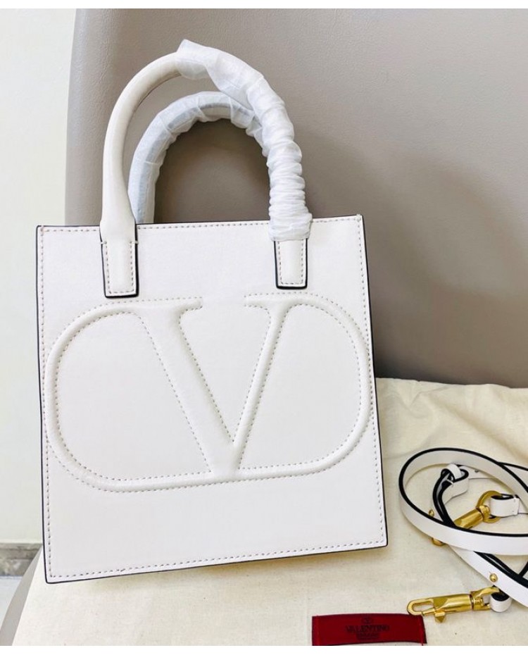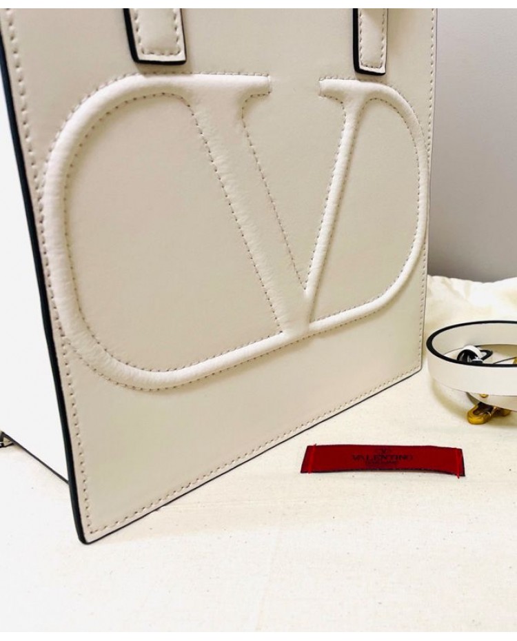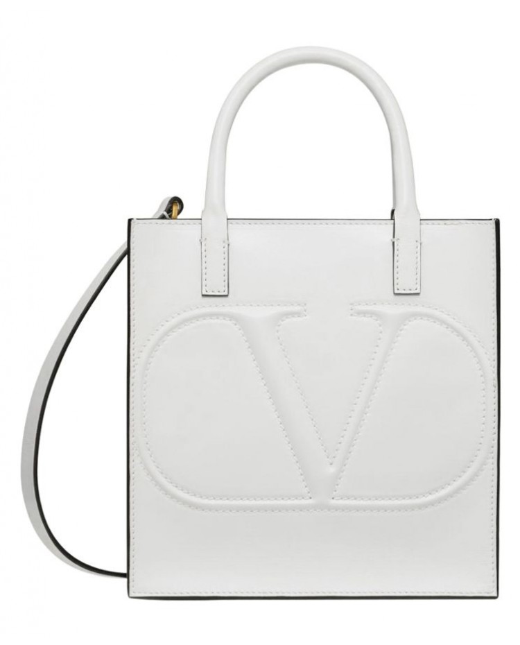 Valentino Garavani VLogo Walk Small Calfskin Tote Bag White