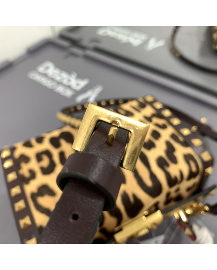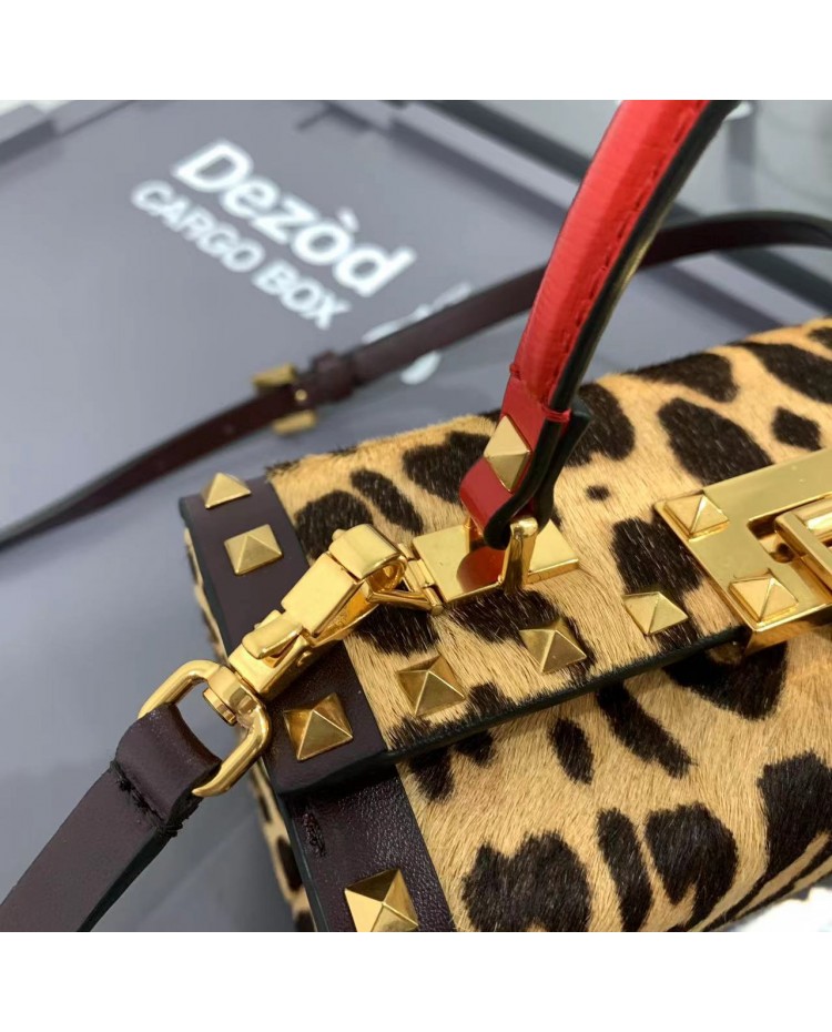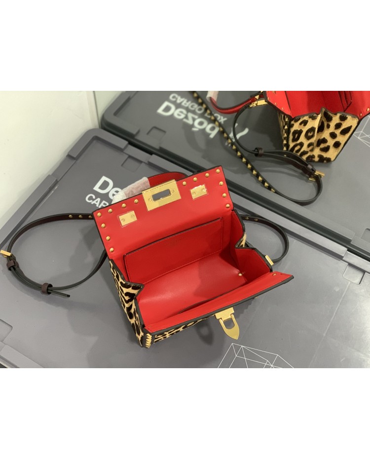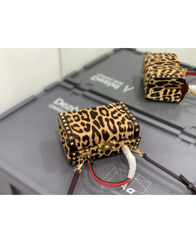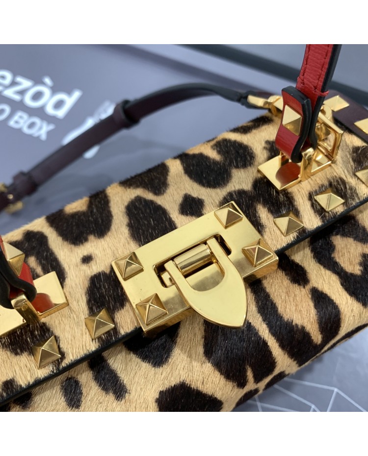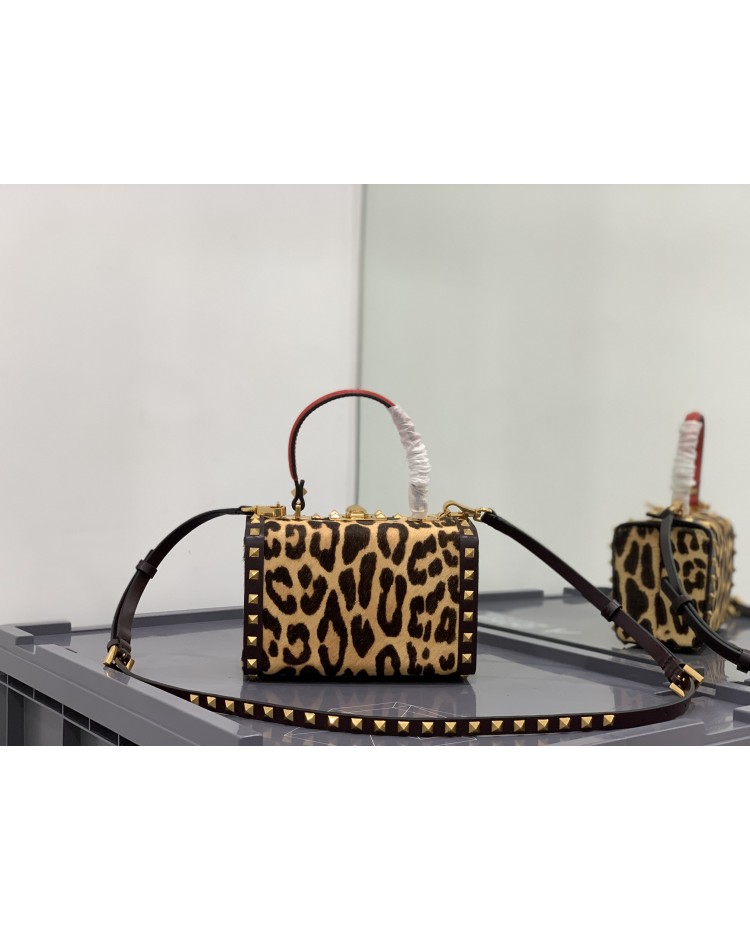 2022 horsehair spring/summer Valentino Garavani Rockstud Alcove grained calfskin box bag with vintage brass distressed metal fittings hook closure
