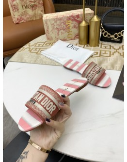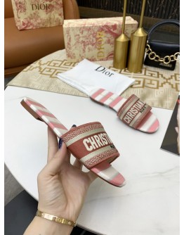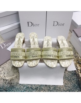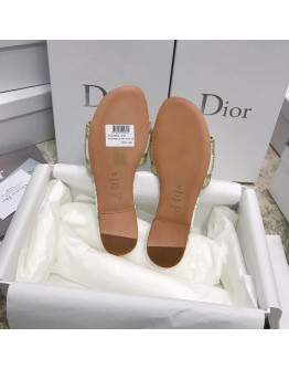 Dior Women Deep Granville Dior Oblique Embroidered Cotton Mule White