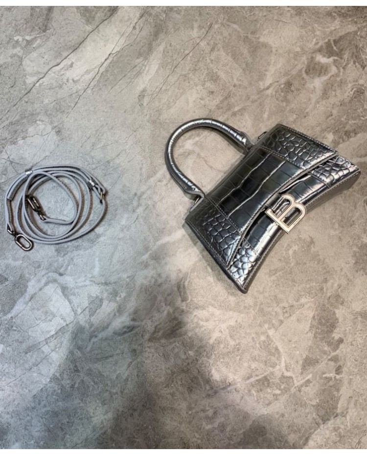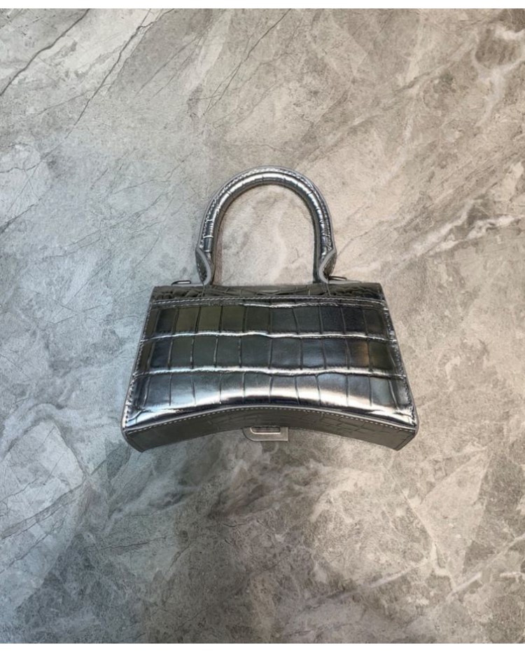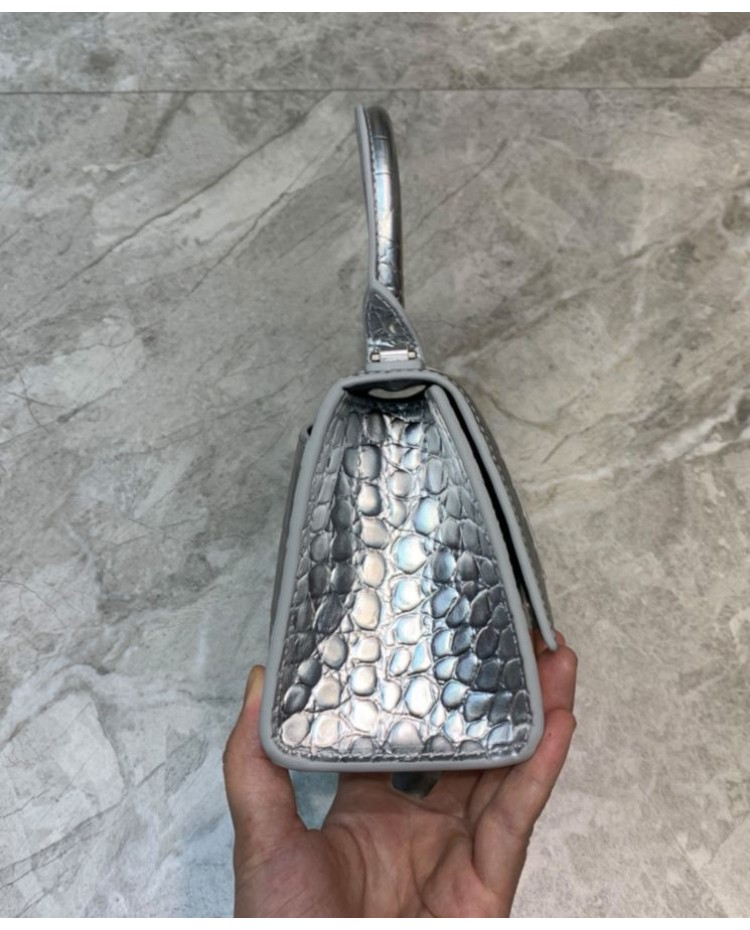 Balenciaga Hourglass XS Top Handle Handbag Silver
