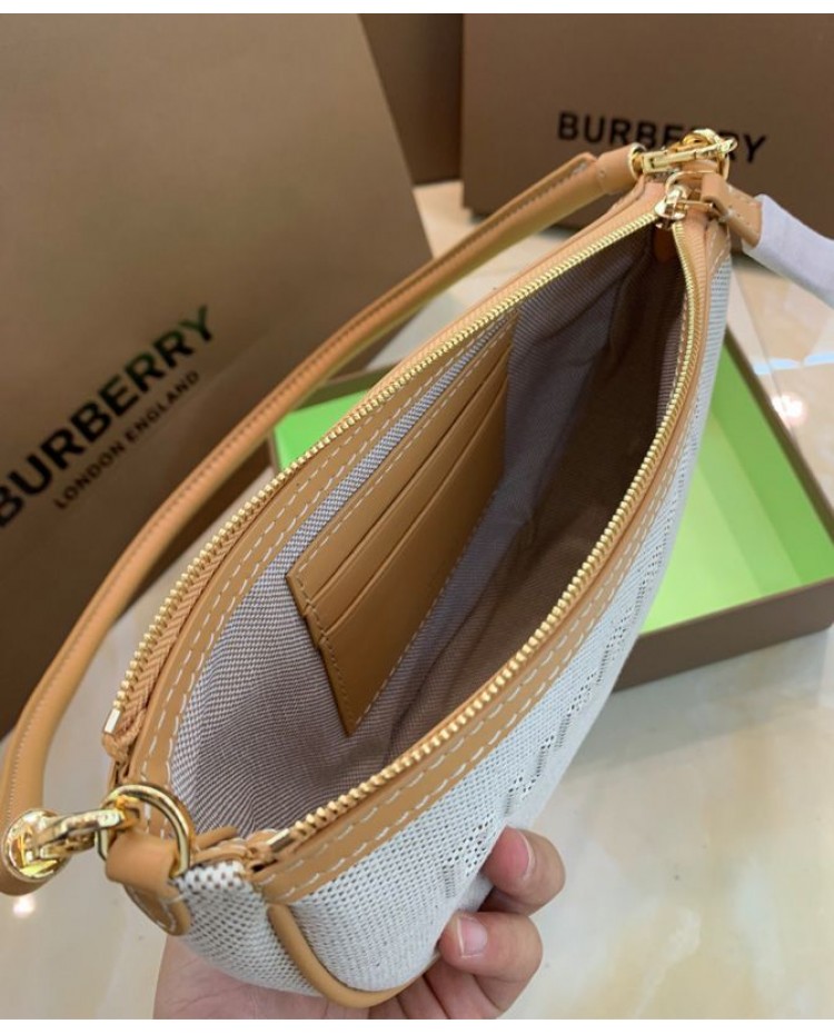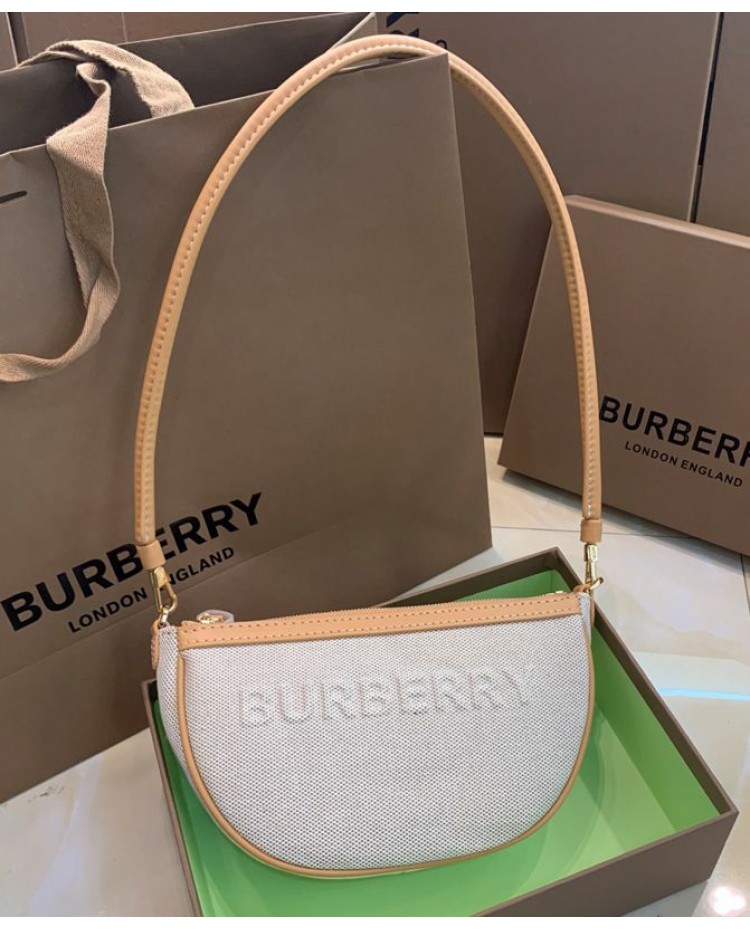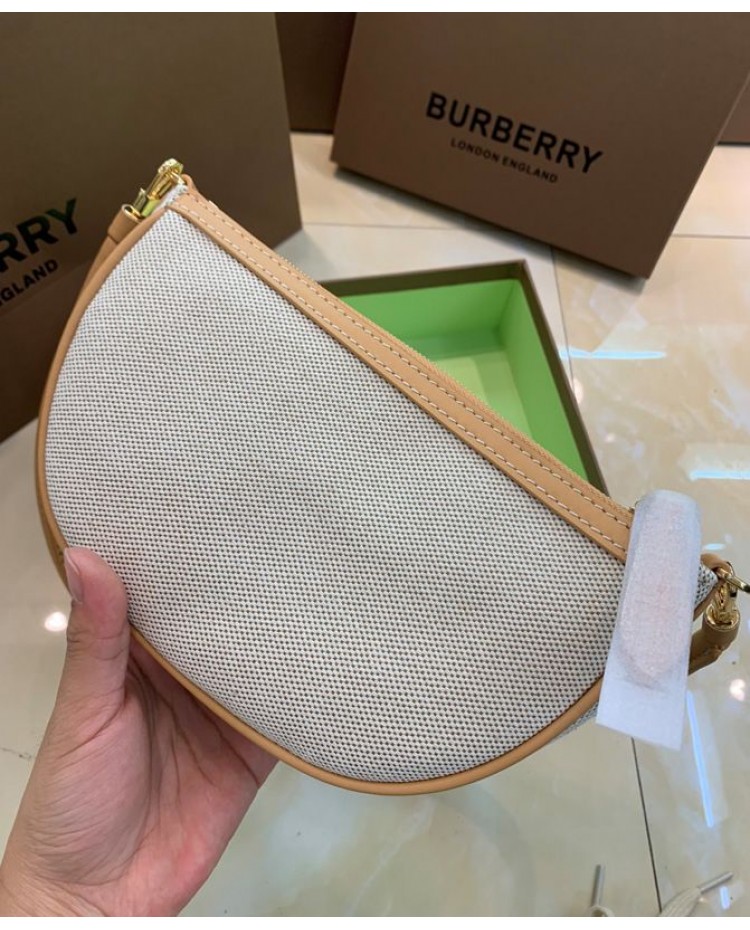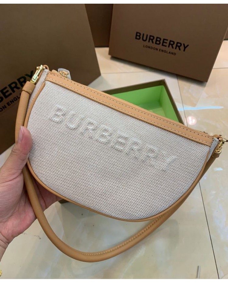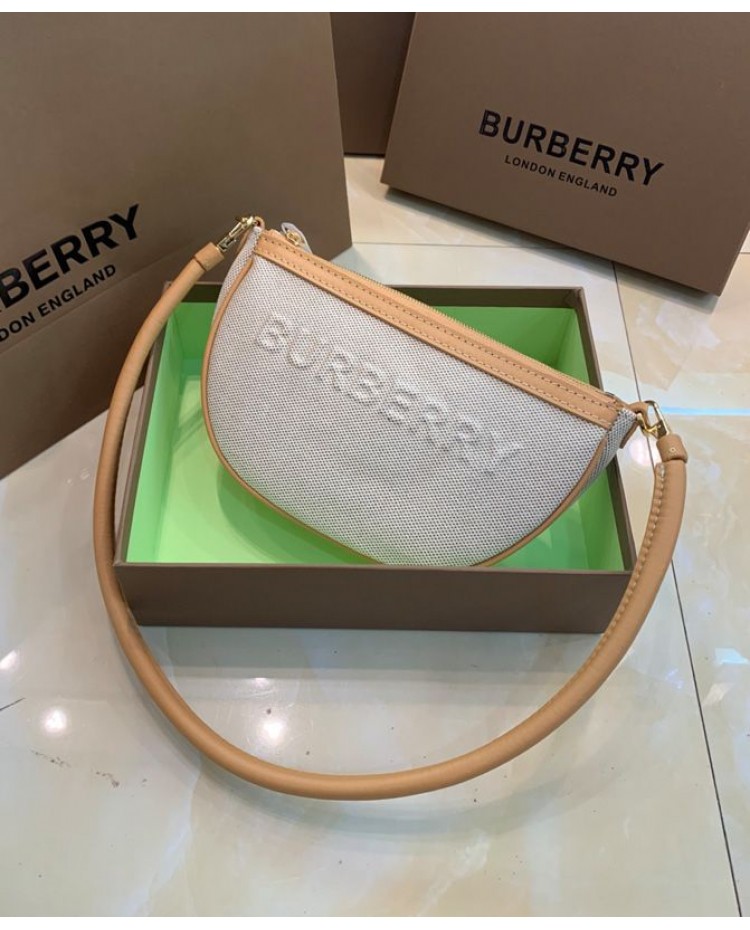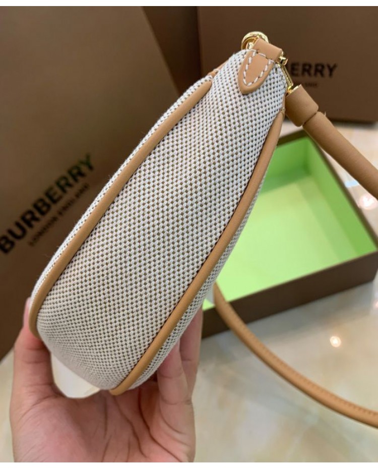 Burberry Embossed Logo Canvas and Leather Olympia Pouch Apricot
