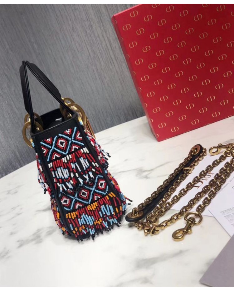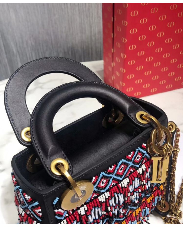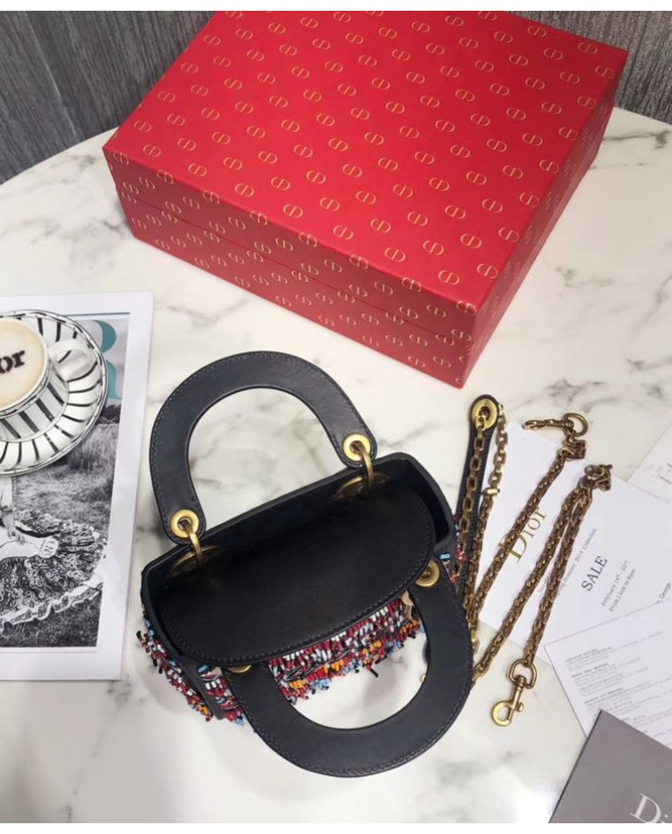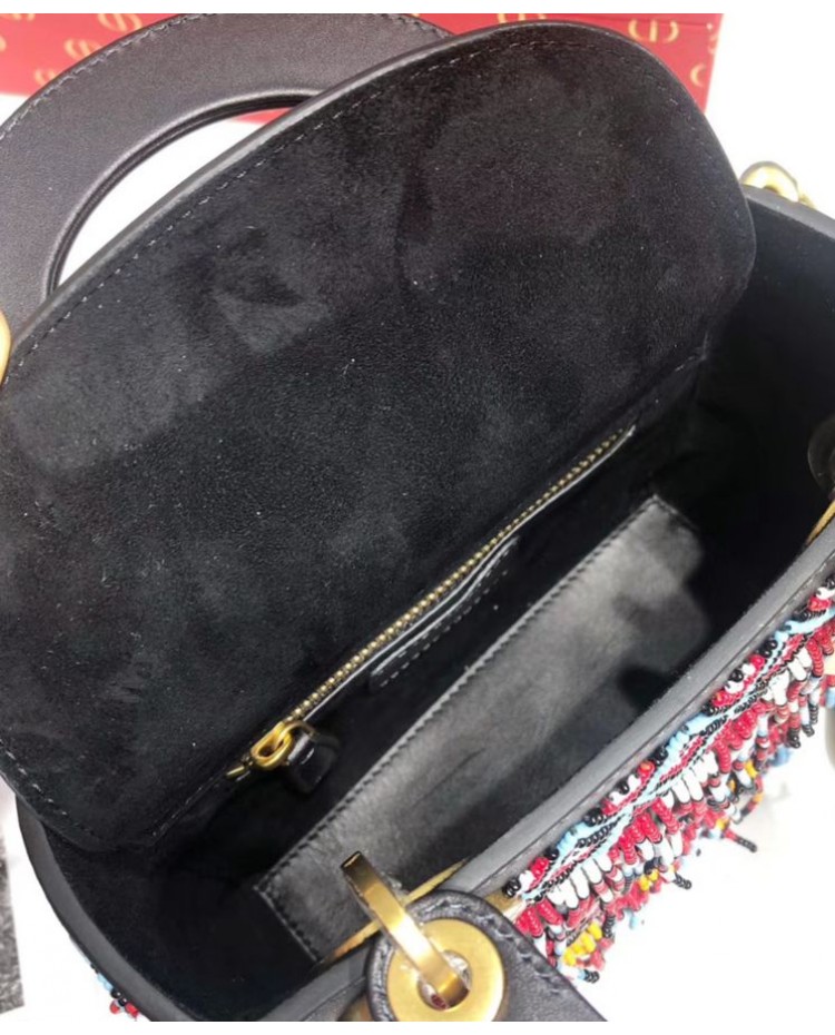 Dior Leather Beaded Fringe Mini Lady Dior Bag Red