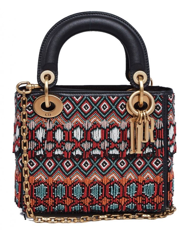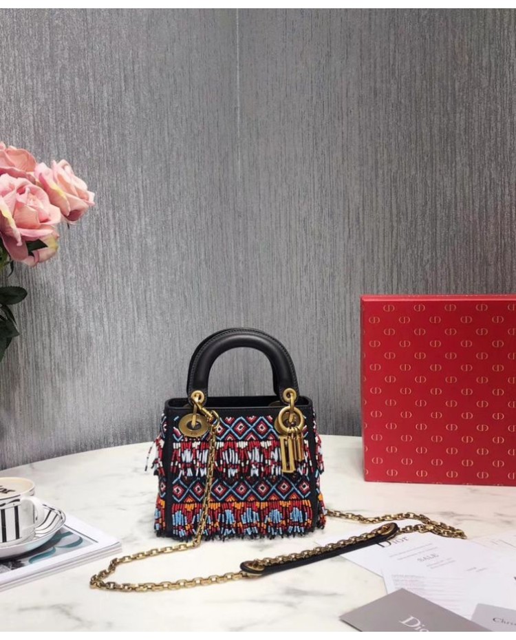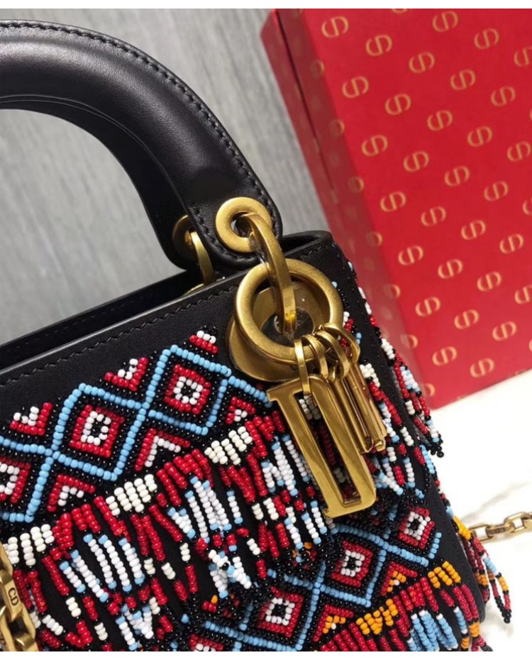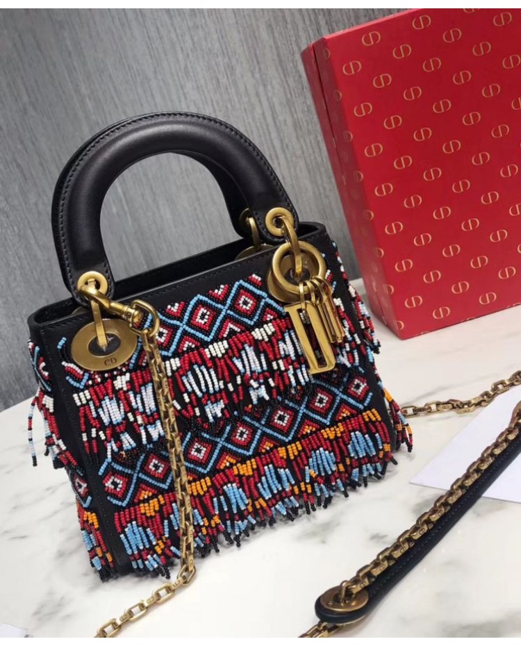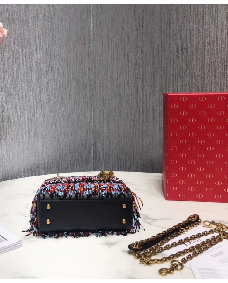 Dior Leather Beaded Fringe Mini Lady Dior Bag Red
