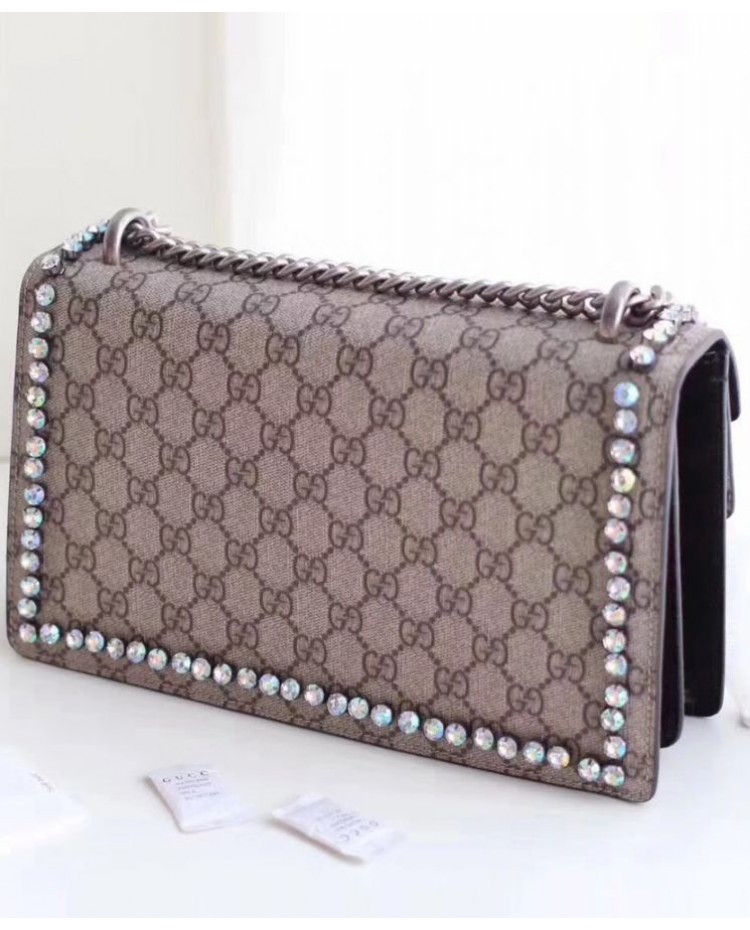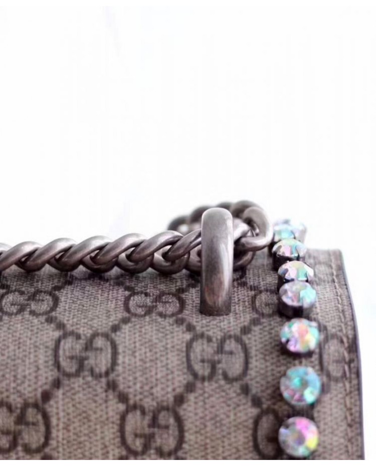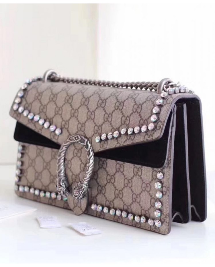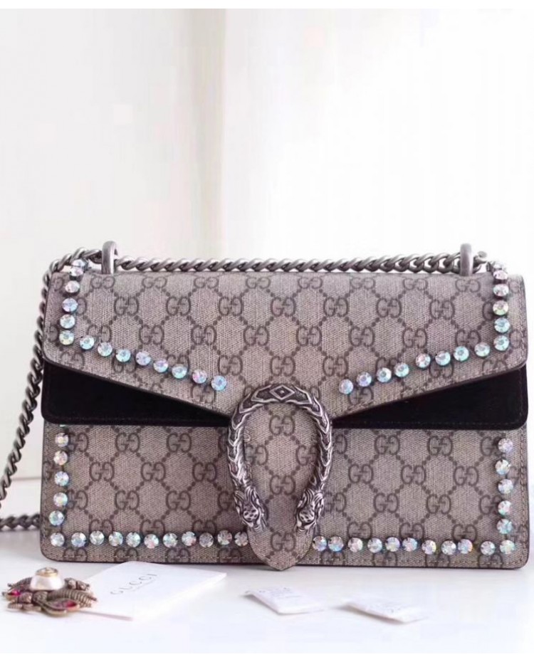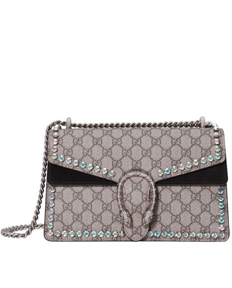 Reviews Over Gucci Dionysus GG Supreme shoulder bag with crystals 400249