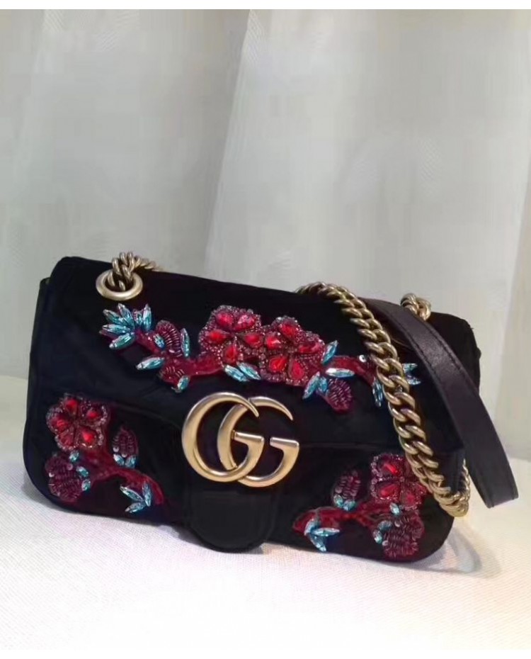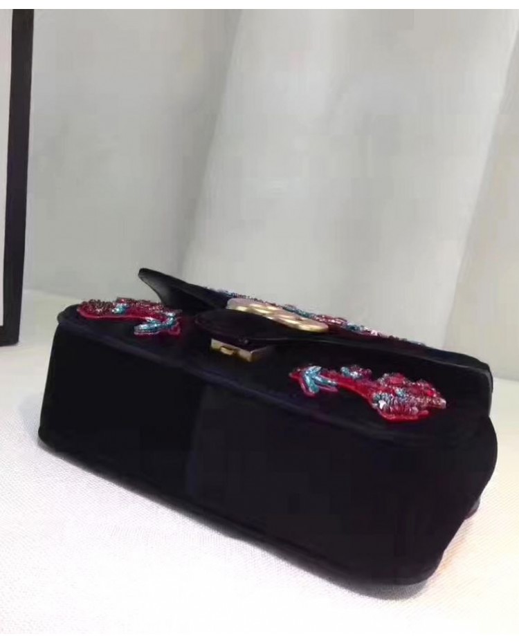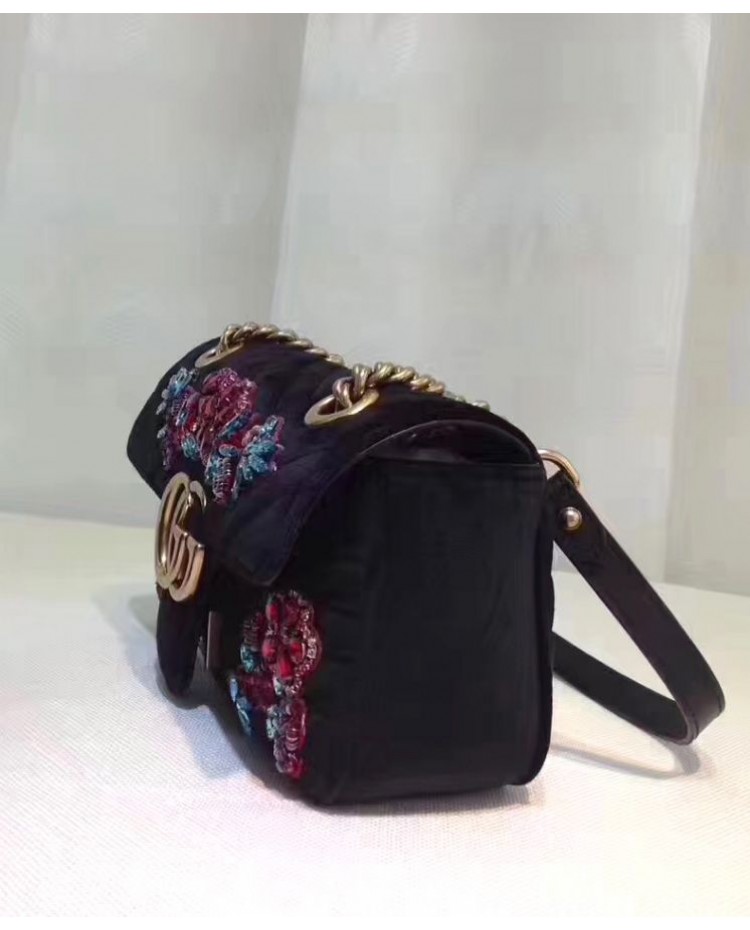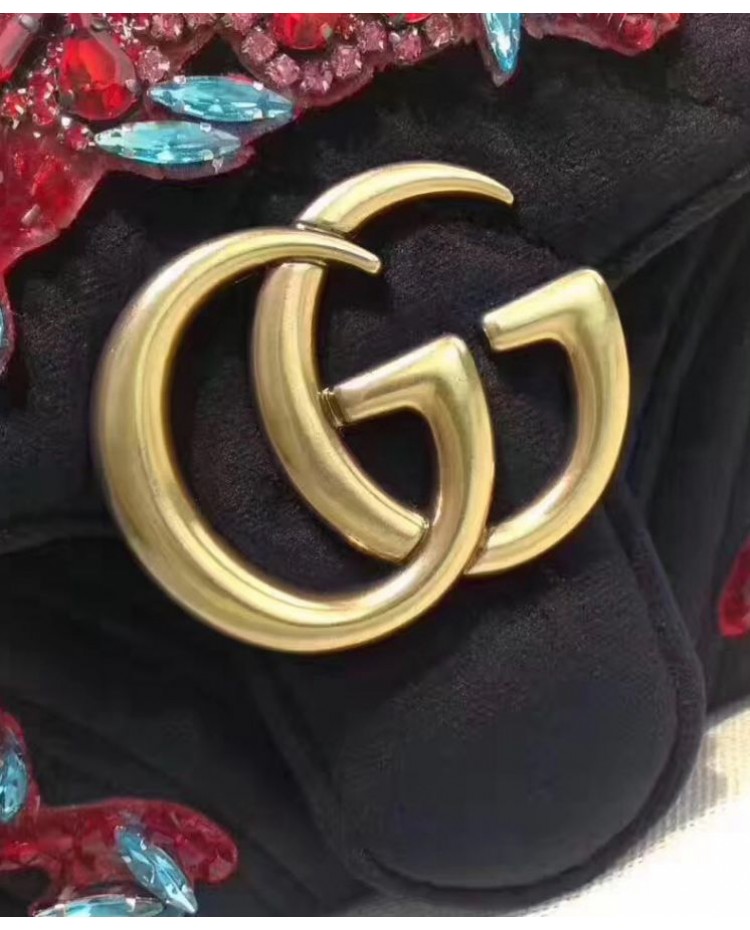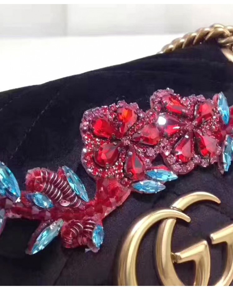 Gucci GG Marmont embroidered velvet mini bag 446744 Black