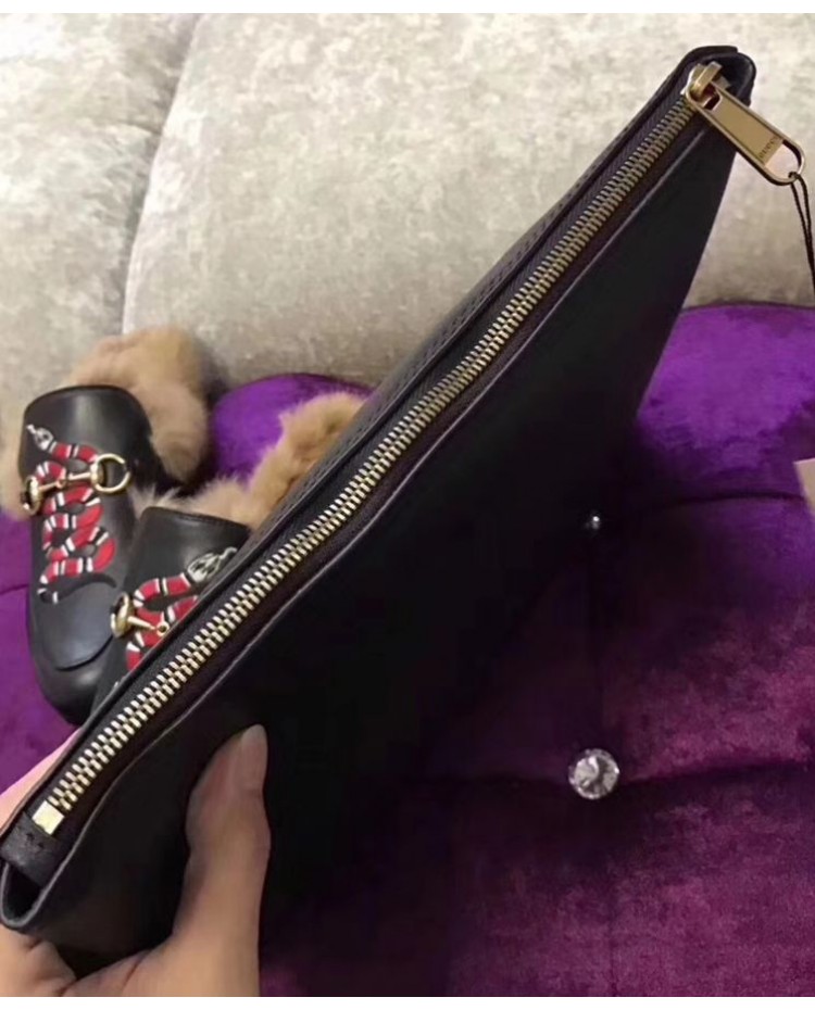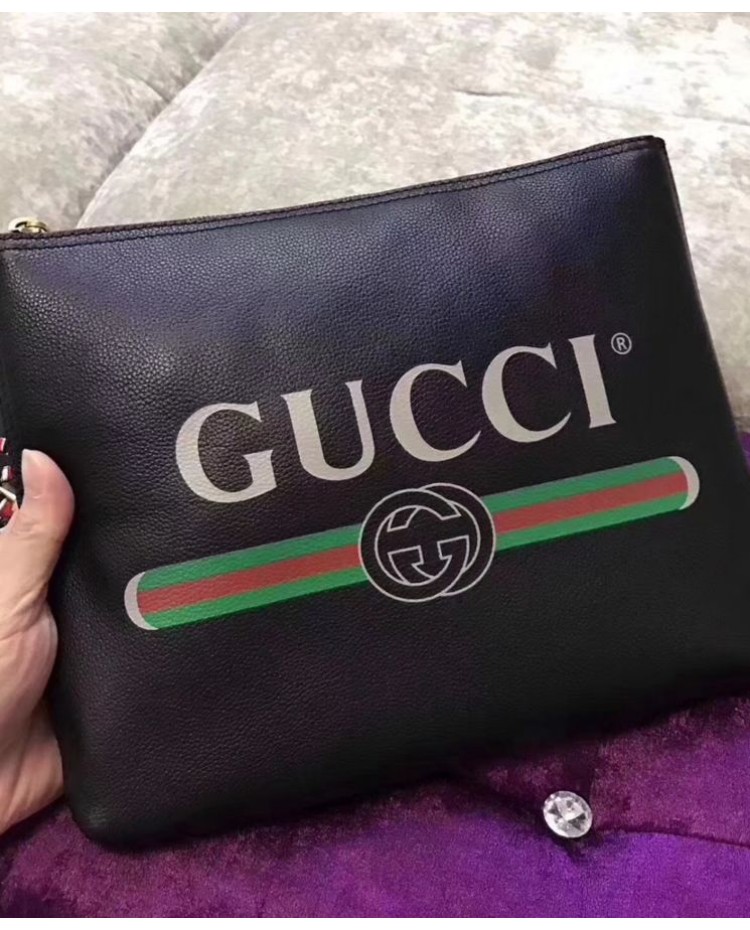 Gucci Print leather medium portfolio 500981 Black