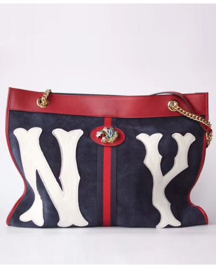 Gucci Rajah large tote with NY Yankees patch Dark Blue