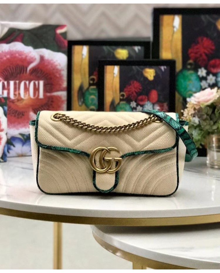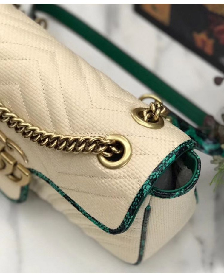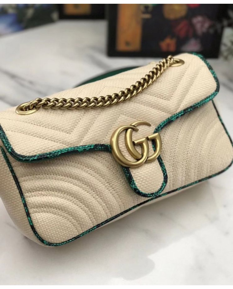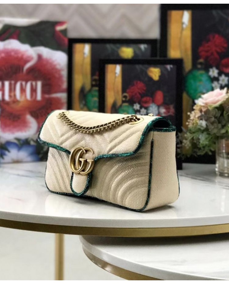 Gucci Online Exclusive GG Marmont raffia small shoulder bag 443497