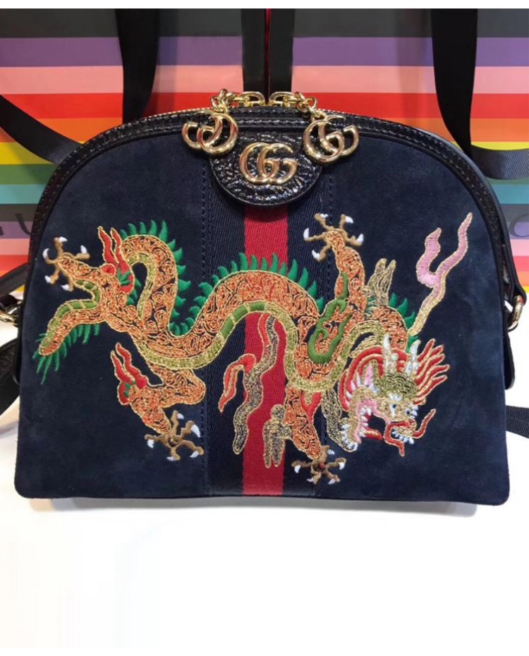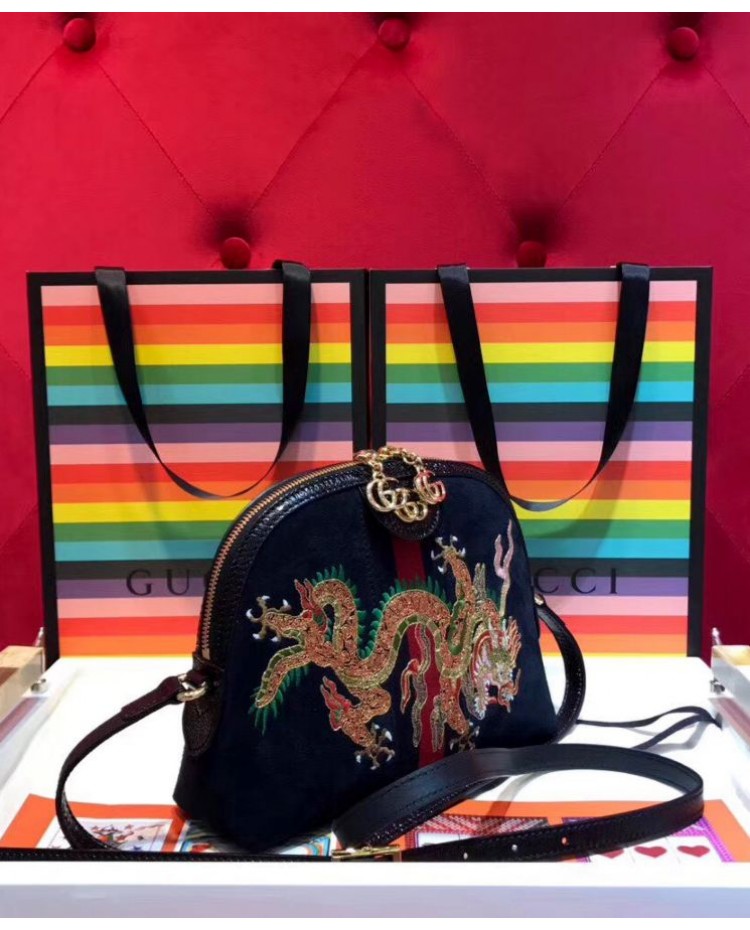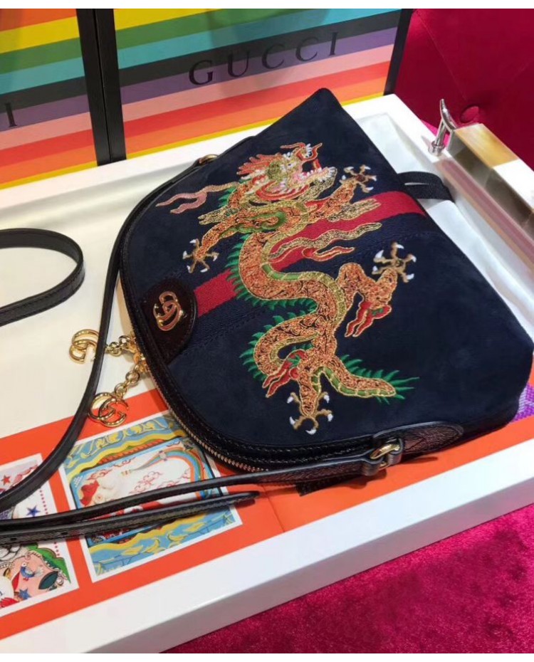Gucci Ophidia embroidered small shoulder bag 499621 Black
