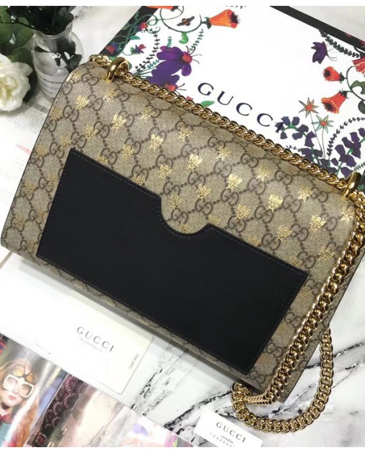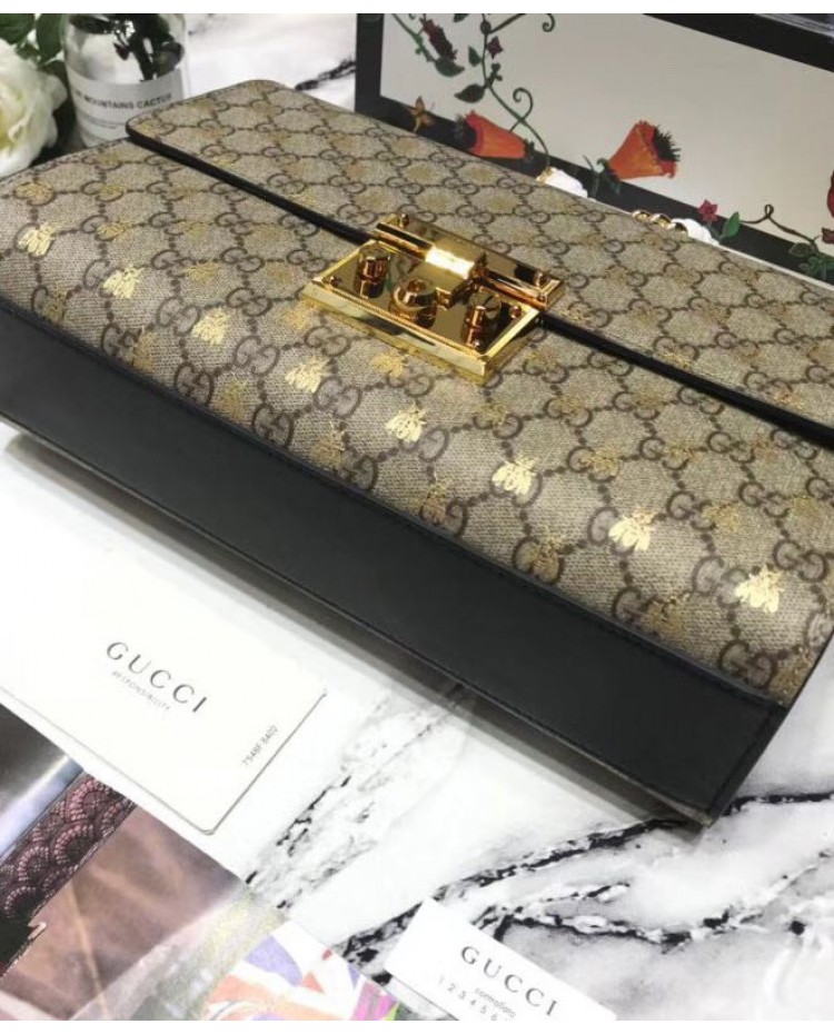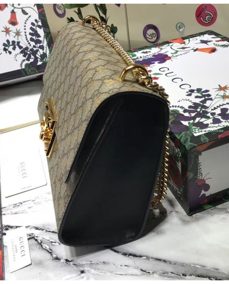 Gucci Medium Padlock GG Supreme Bee Shoulder Bag 409486 Coffee