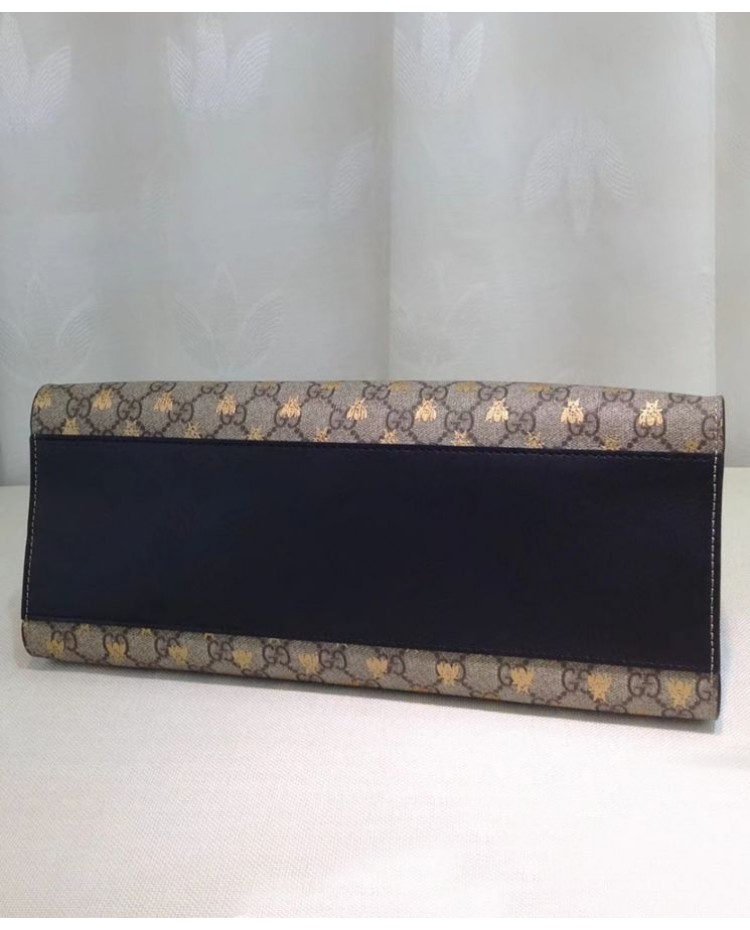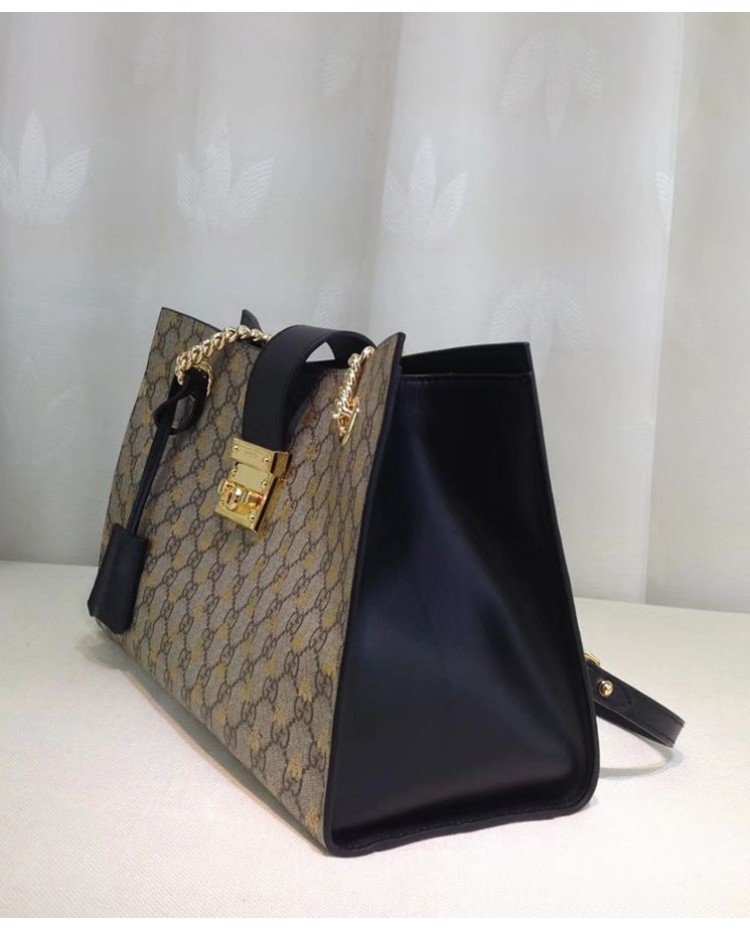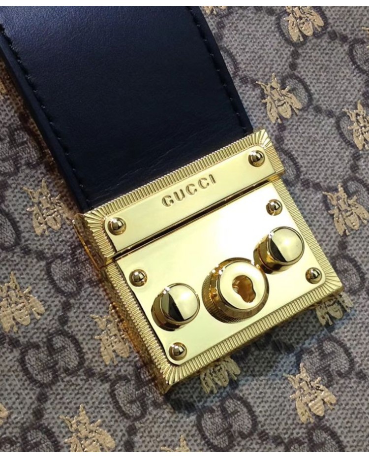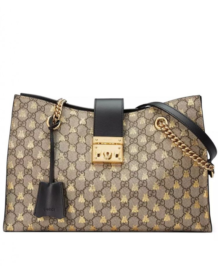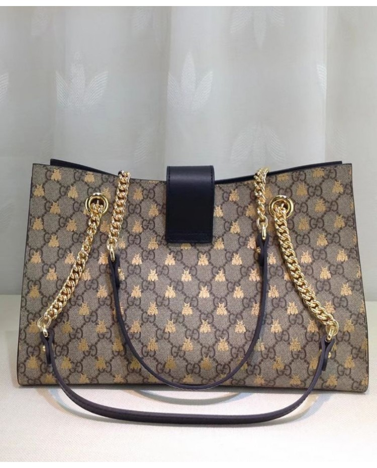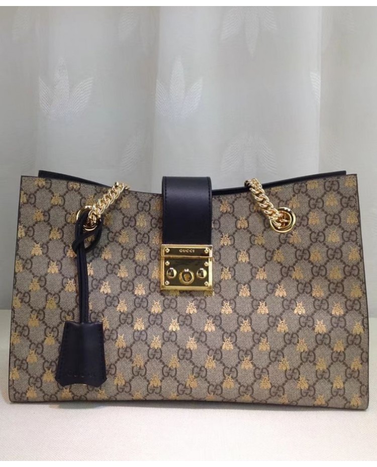 Gucci Padlock GG Supreme Canvas Bees Medium Shoulder Tote Bag 479197 Coffee