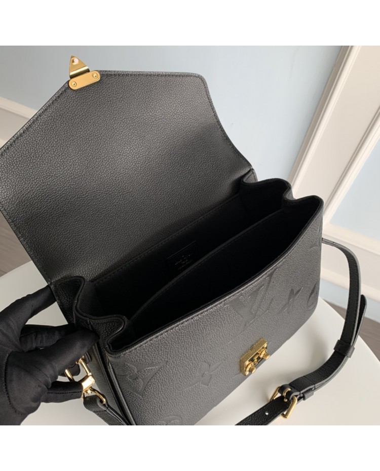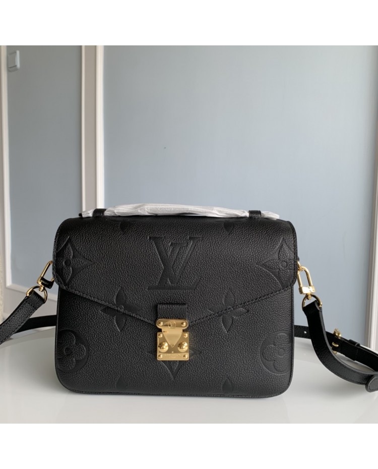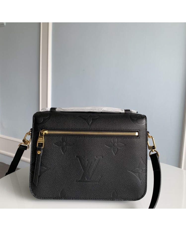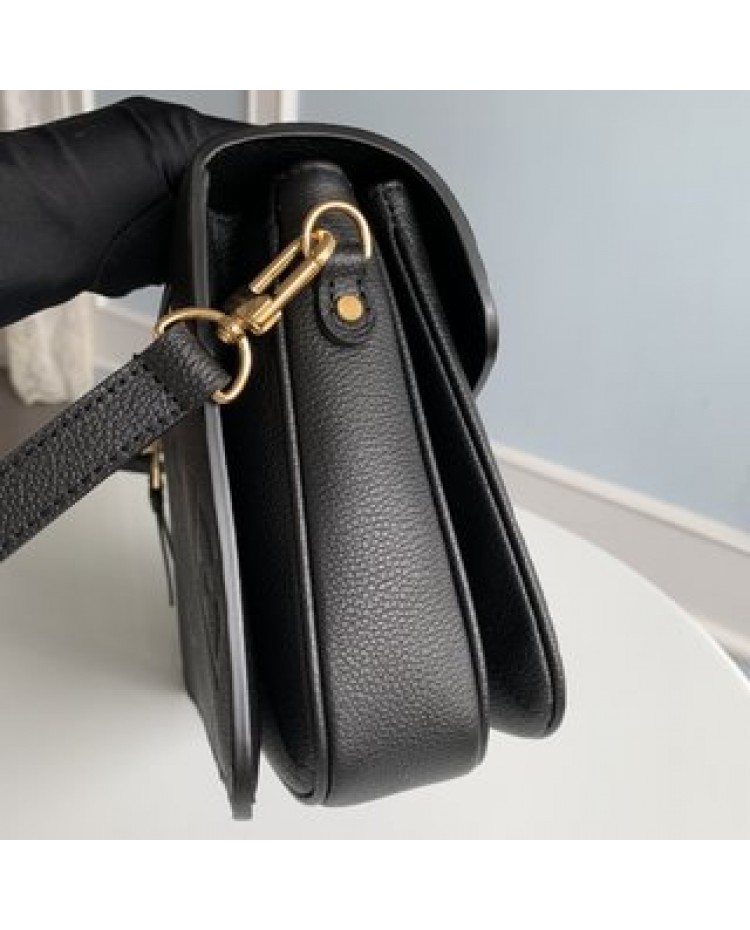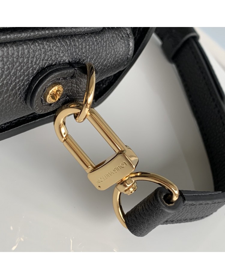 black full-leather messenger bag series This Pochette Metis vividly interprets elegant style with a petite figure.