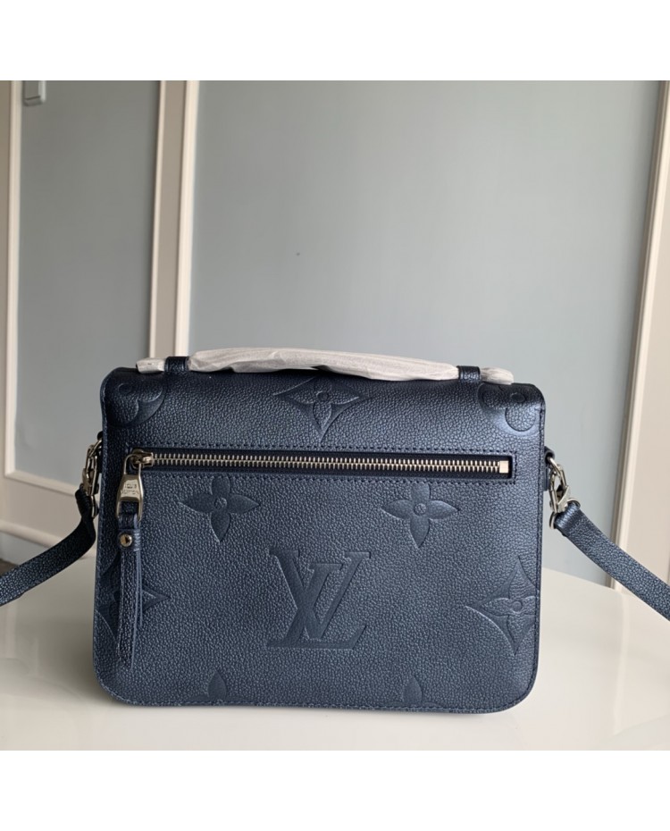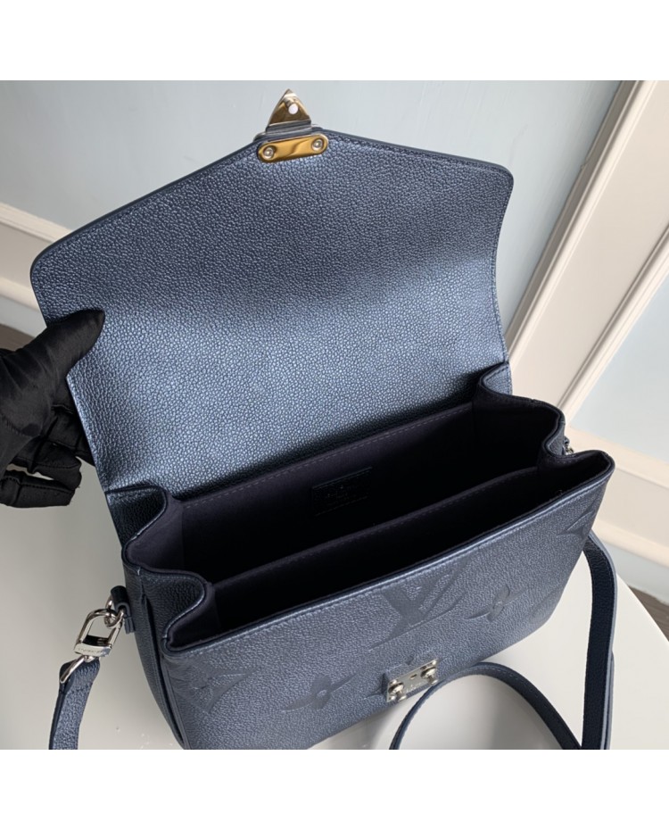 blue full-leather messenger bag series This Pochette Metis vividly interprets elegant style with a petite figure.
