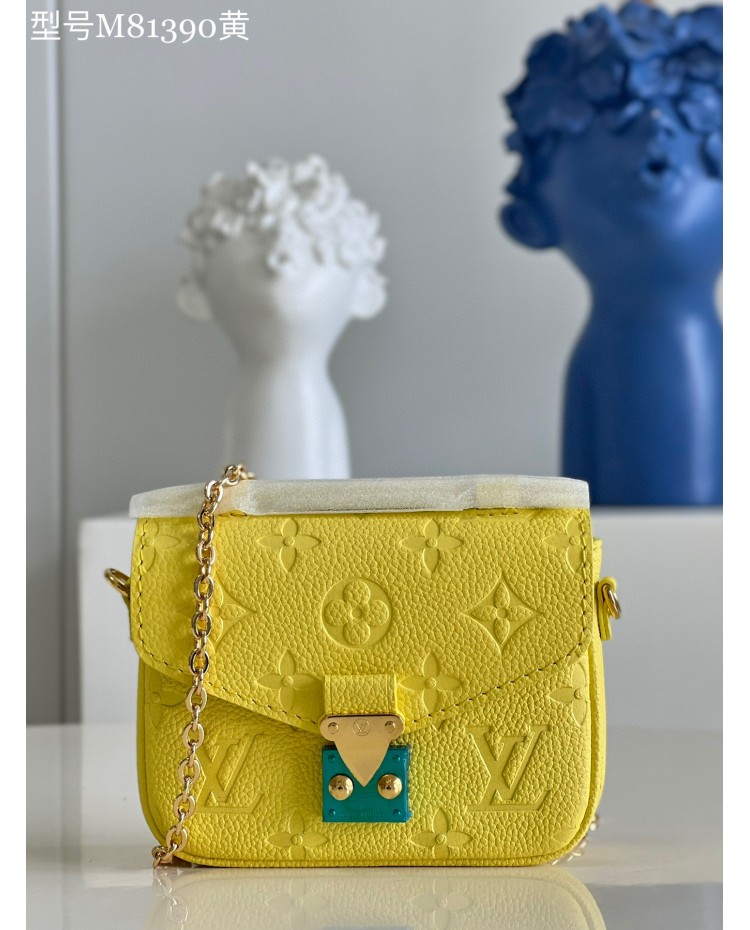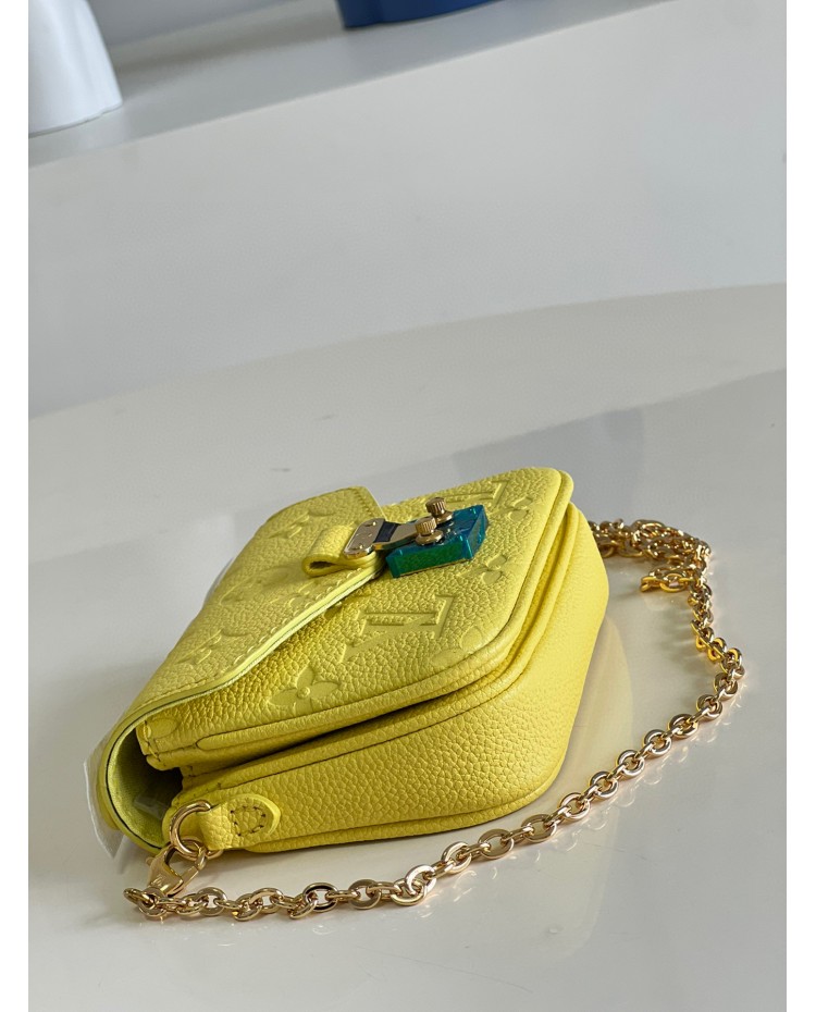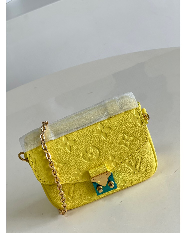 This Micro Métis messenger chain bag is made of soft Monogram Empreinte leather, condensing the classic Pochette Métis handbag design in a pocket size.