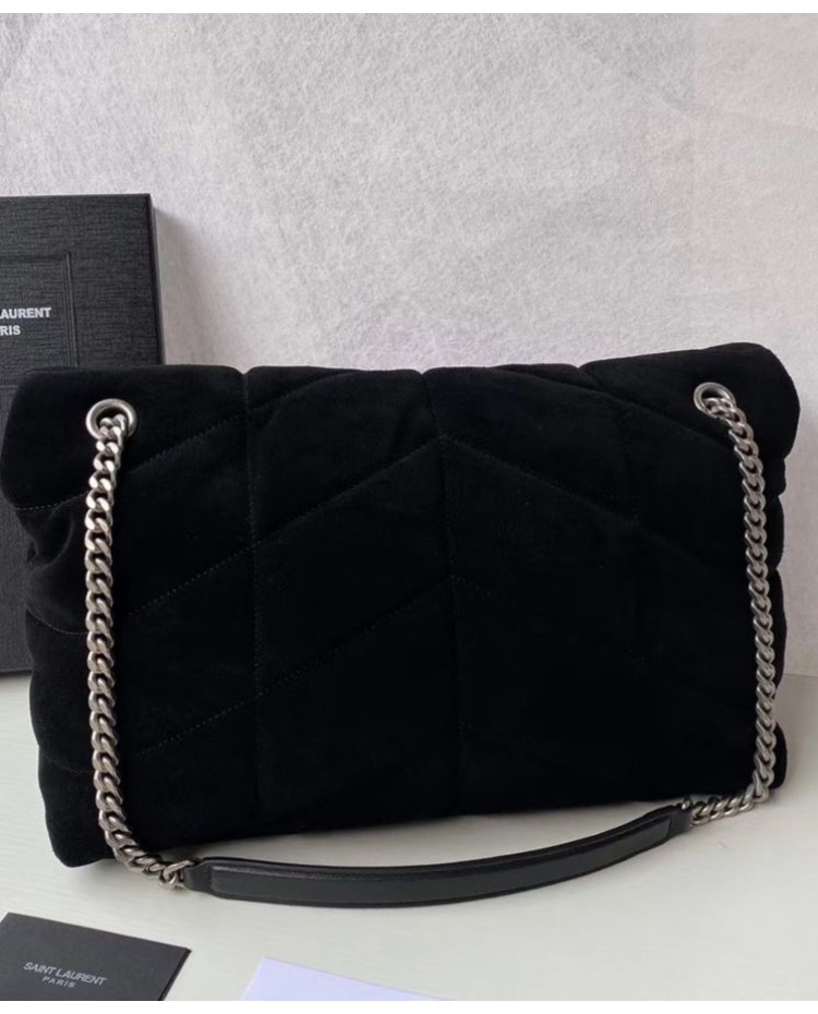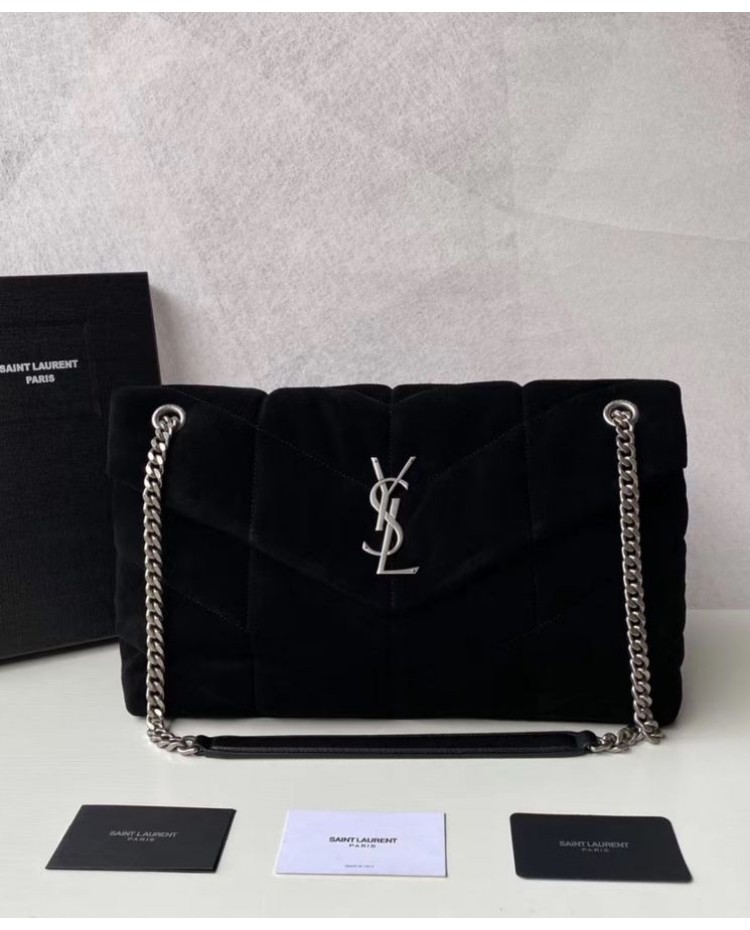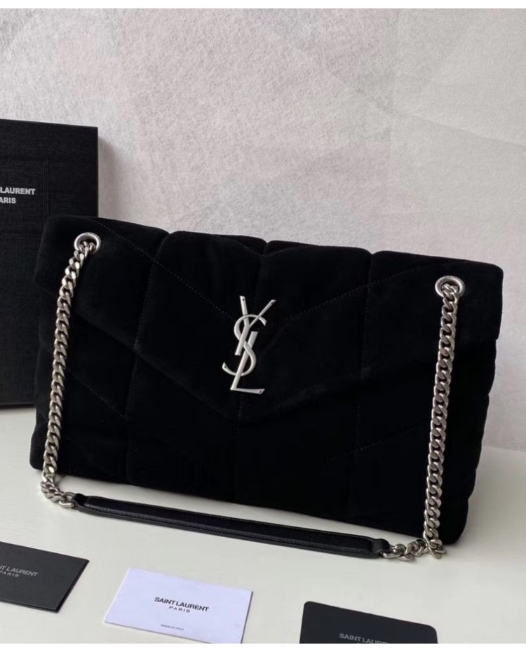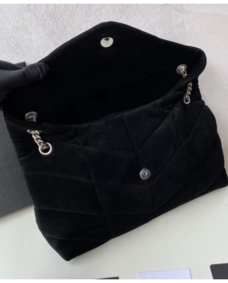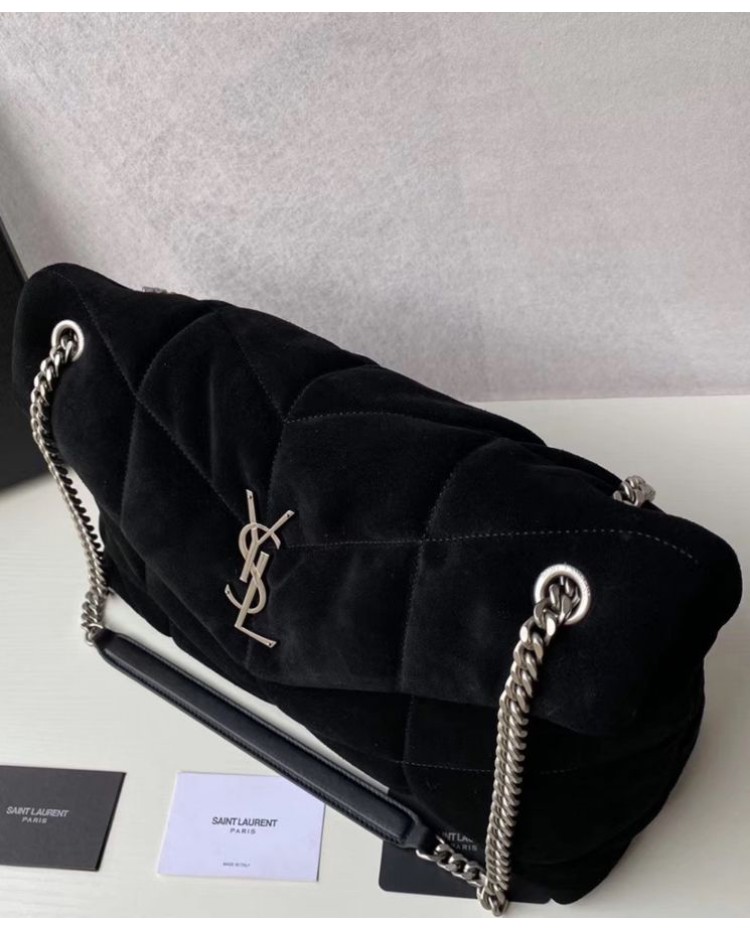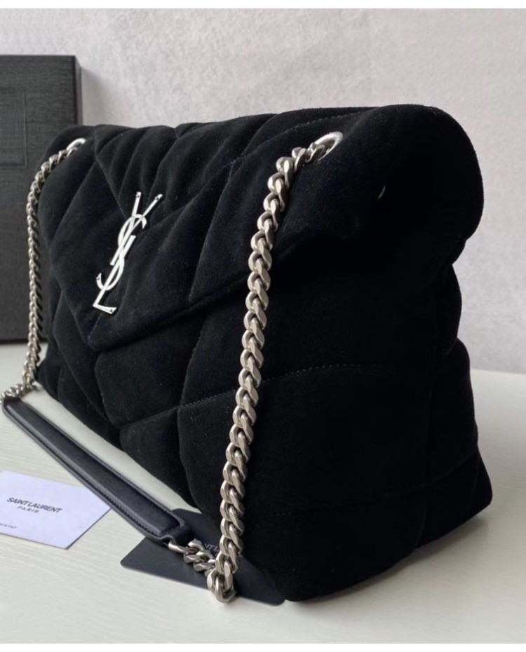 Saint Laurent Loulou Puffer Medium Bag In Quilted Suede And Lambskin