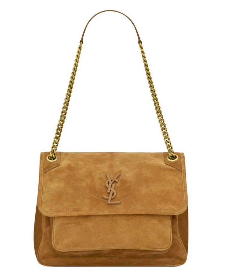 Saint Laurent Niki Medium In Suede And Smooth Leather 498894 Coffee