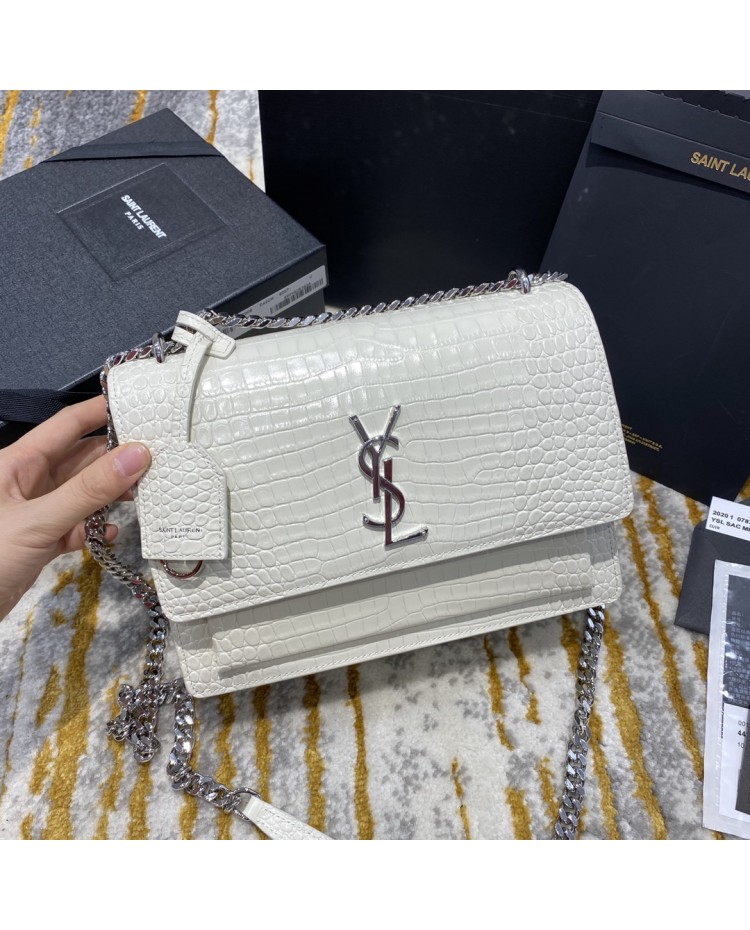 Reviews Over YSL Sunset Small 22cm Croc White Bag