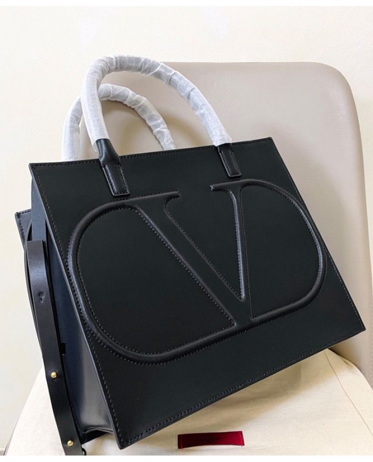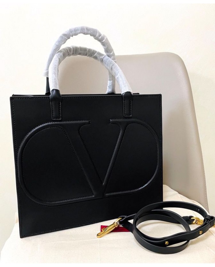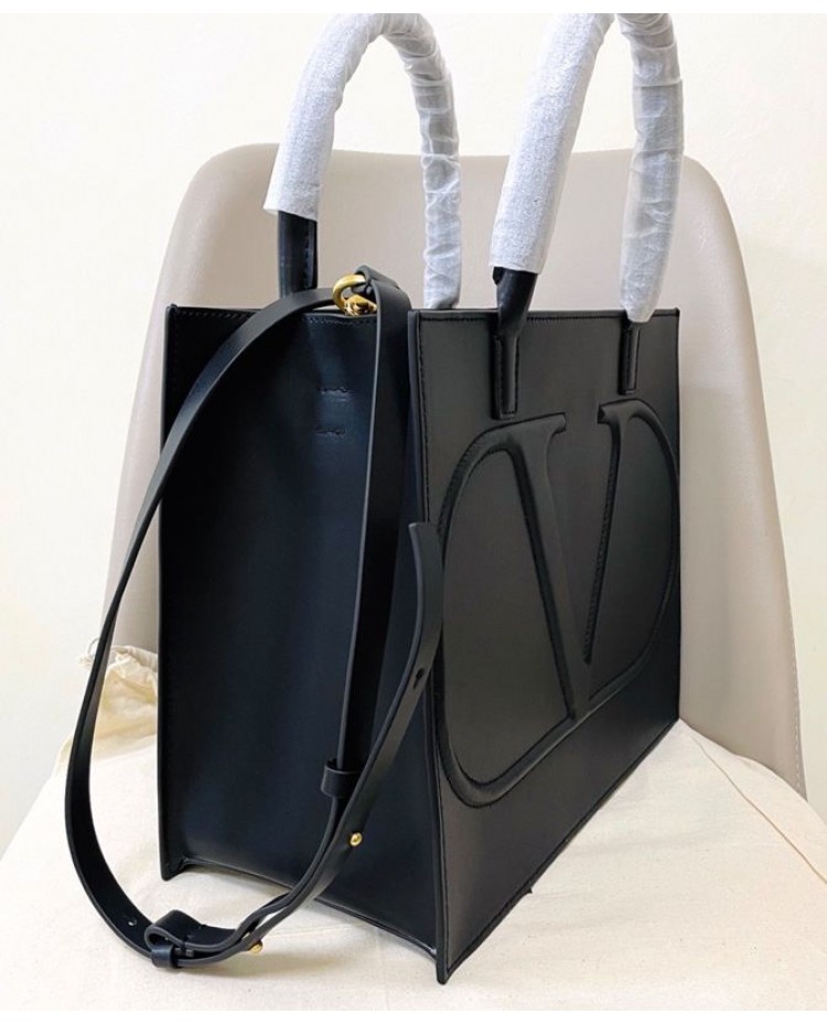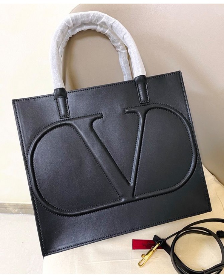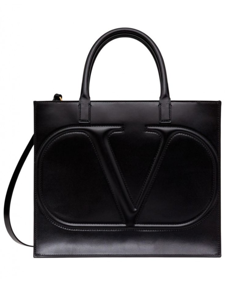 Valentino Garavani VLogo Walk Calfskin Tote Bag Black