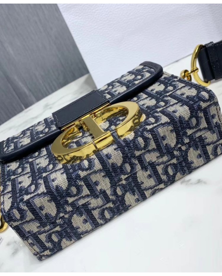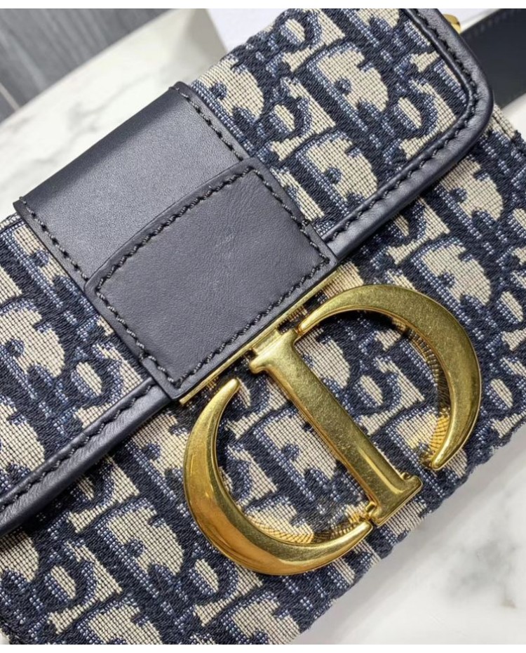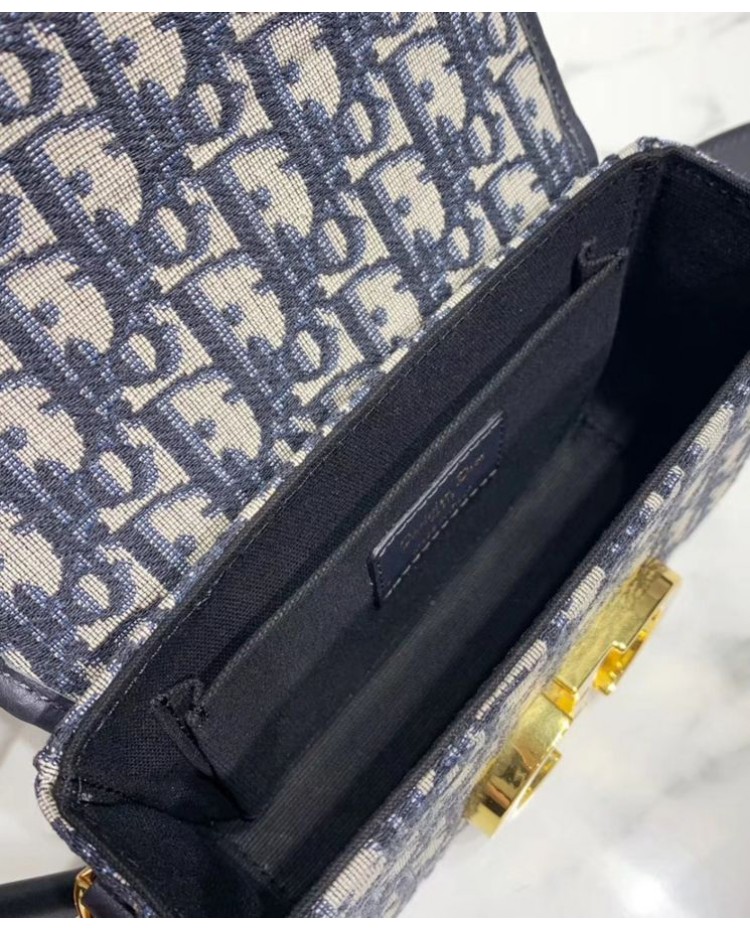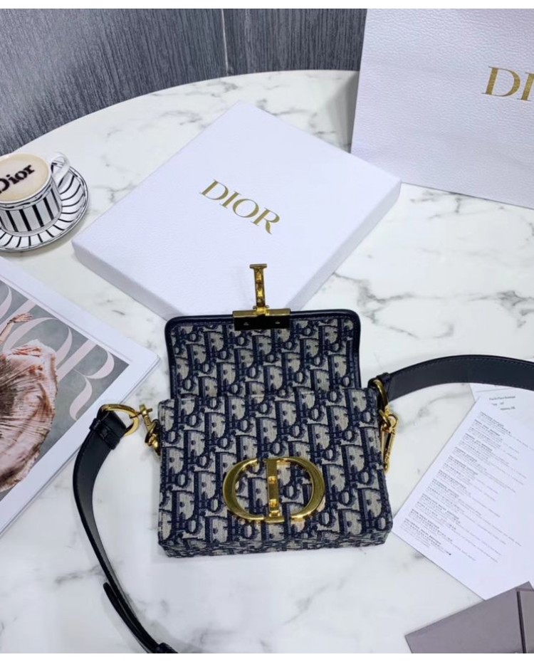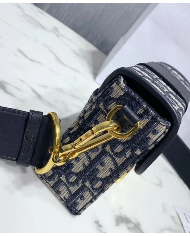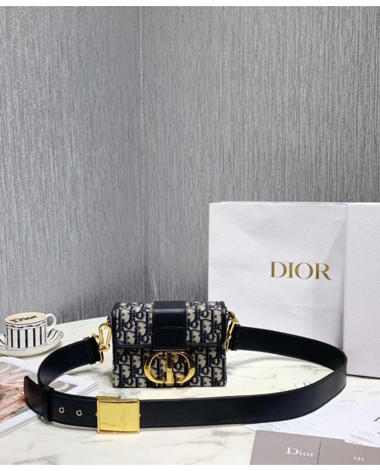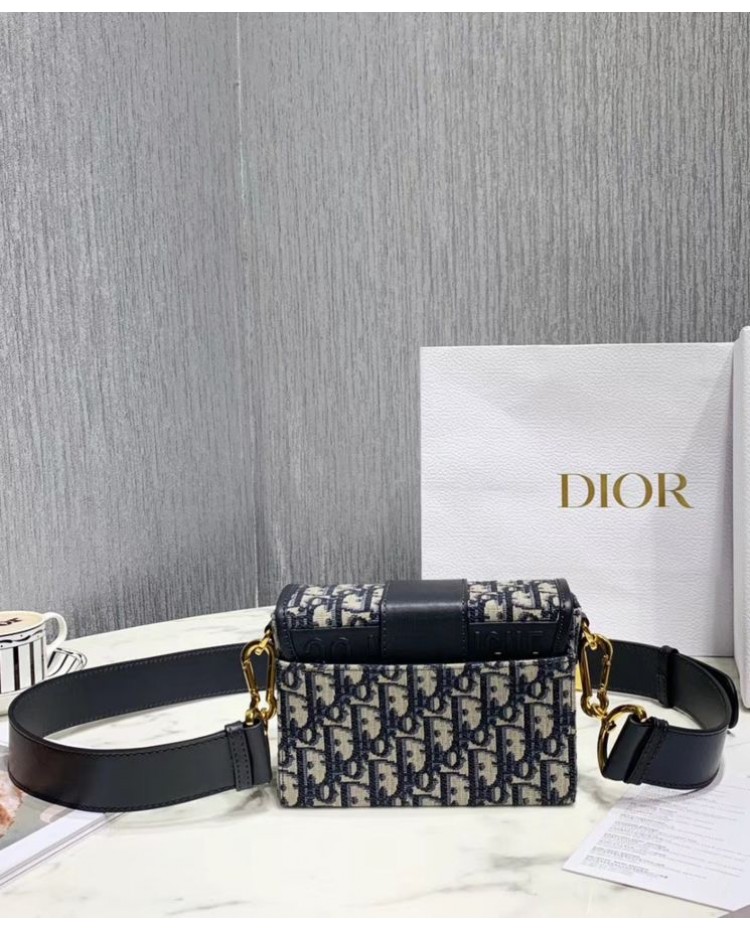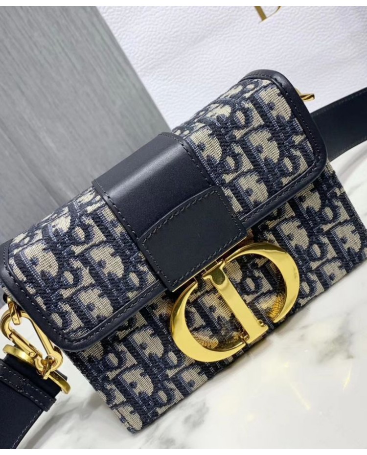Dior 30 Montaigne Jacquard Canvas Box Bag Dark Blue