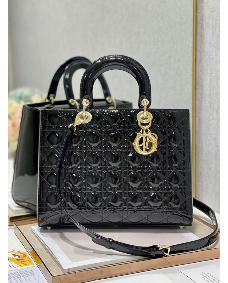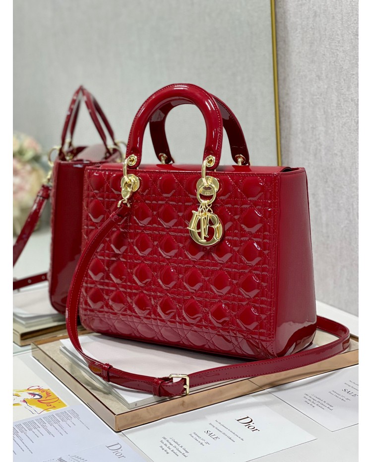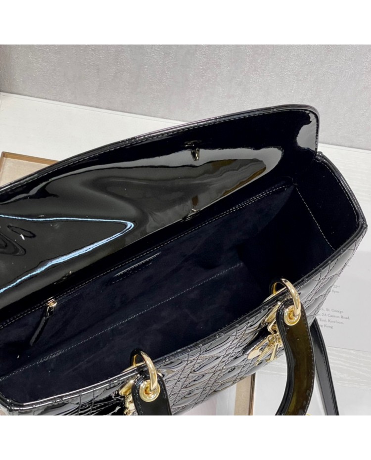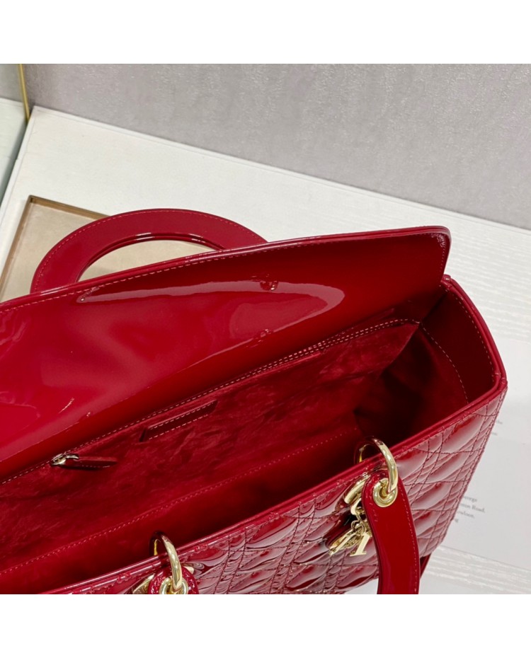 Lady Dior Patent Black&Red Large 32cm