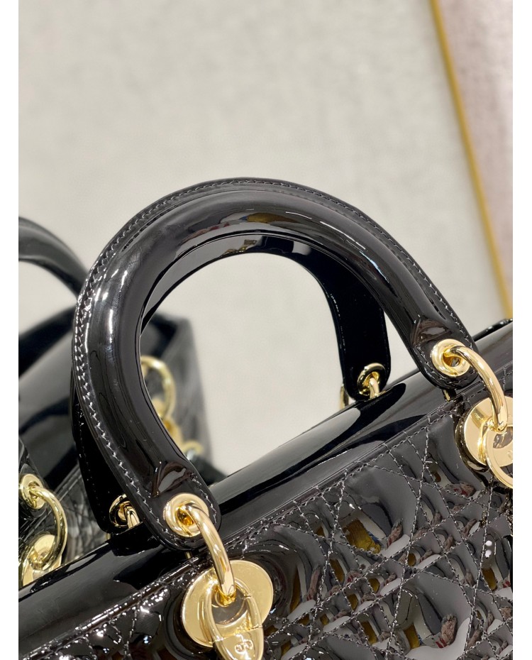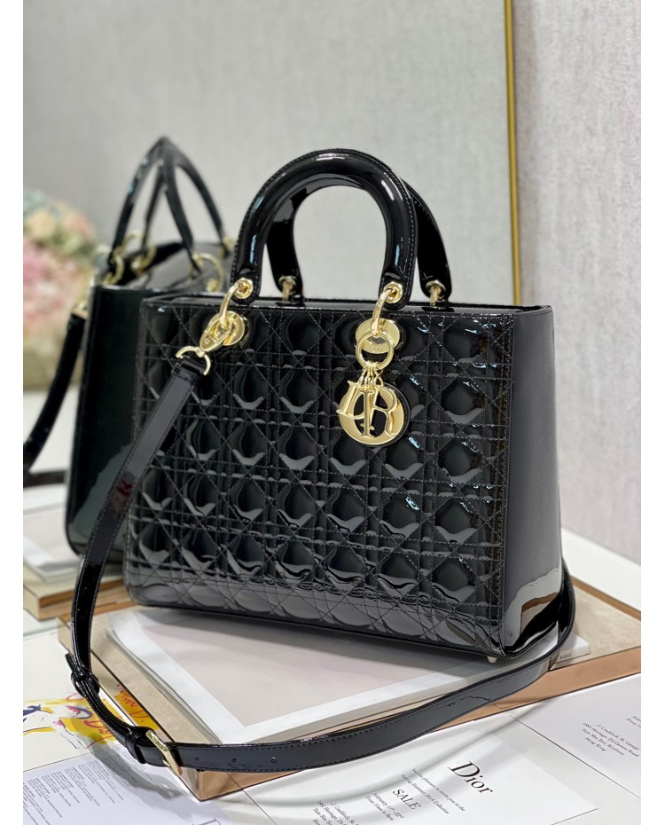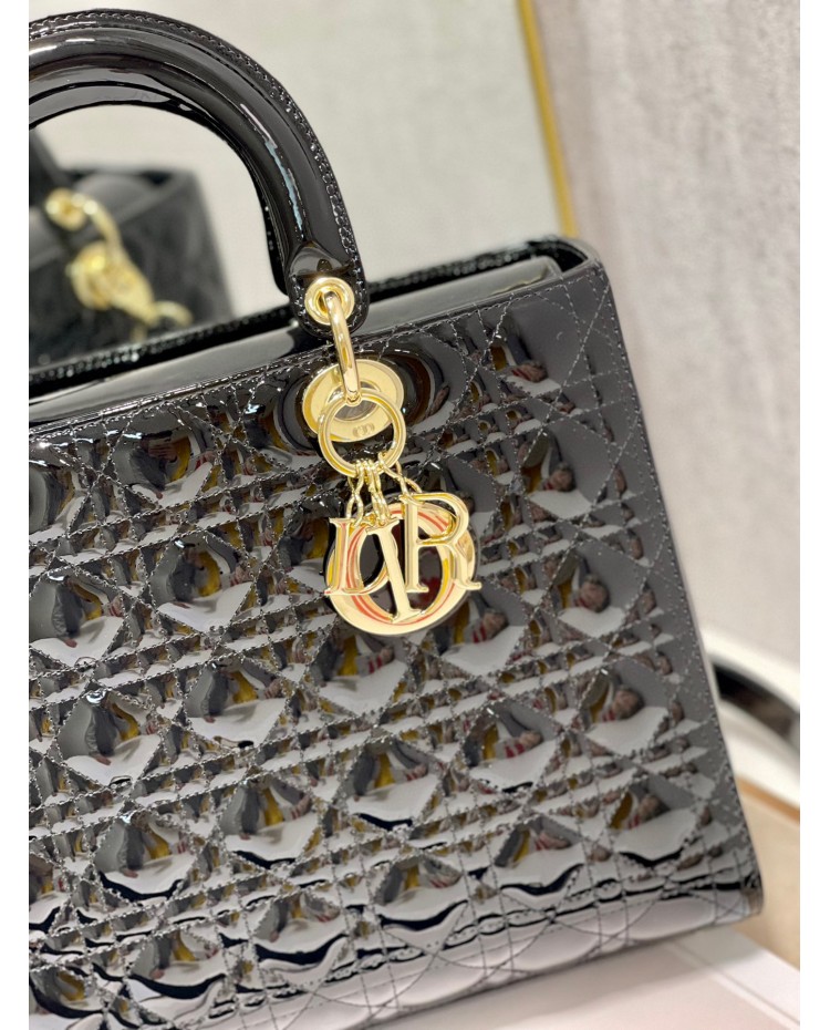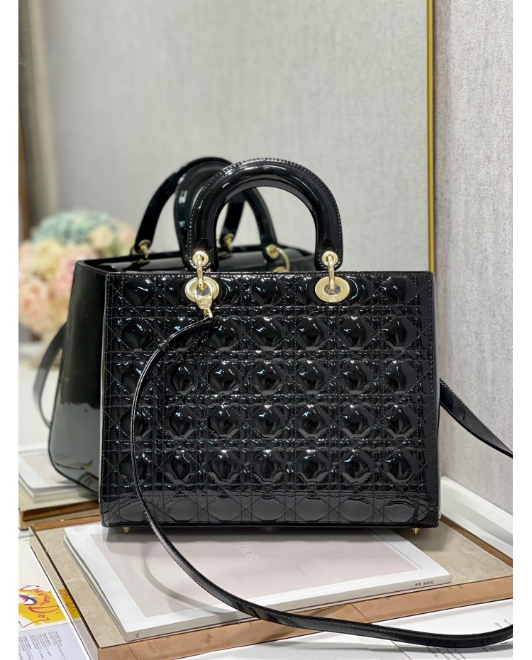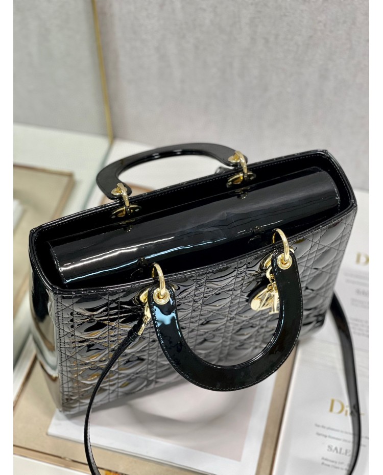 Lady Dior Patent Black&Red Large 32cm