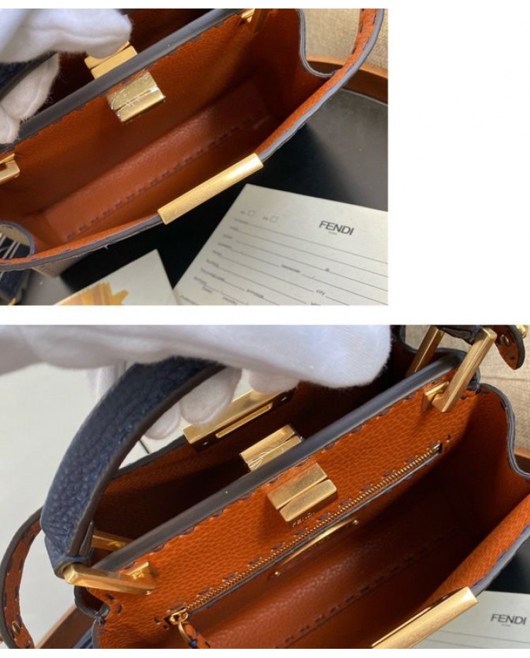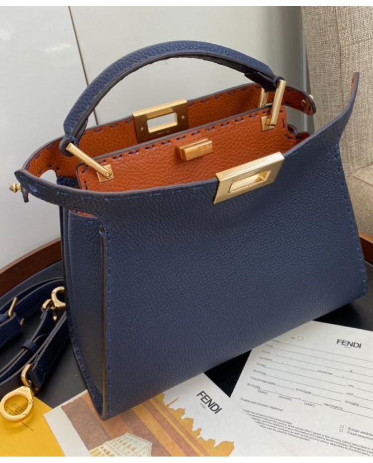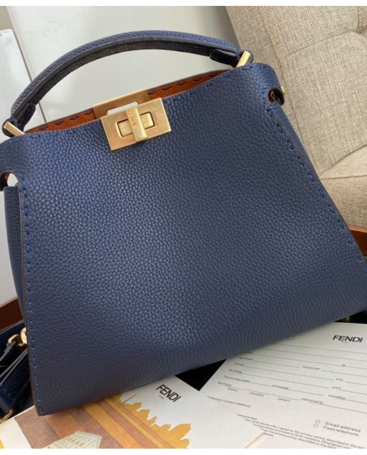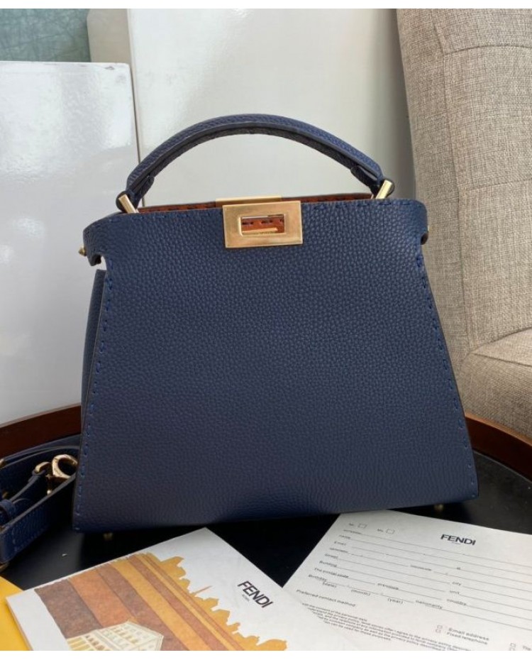 Fendi Peekaboo Iconic Essentially Leather Bag Dark Blue