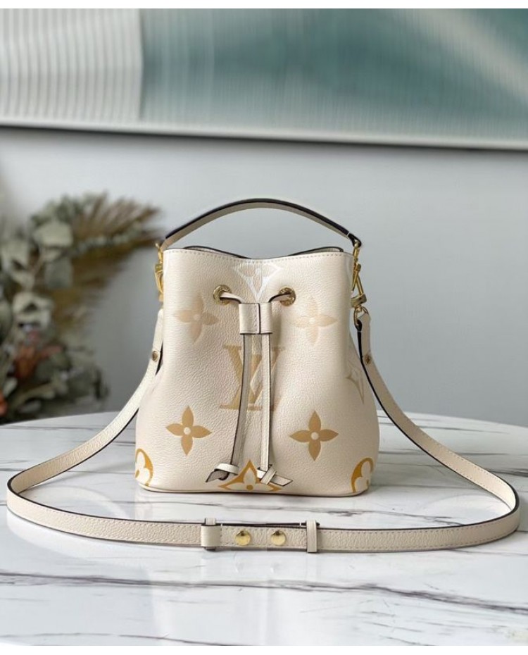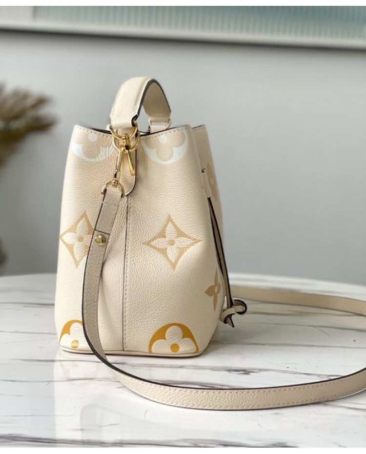 Made from two-color Monogram Empreinte leather, the gradient pastel colorway of the Monogram Giant motif brings an estival feel to this resolutely on-trend NeoNoe BB bucket bag. It features a detachable top handle for hand and elbow carry as well as an adjustable strap for hand carry and over-the-shoulder wear.