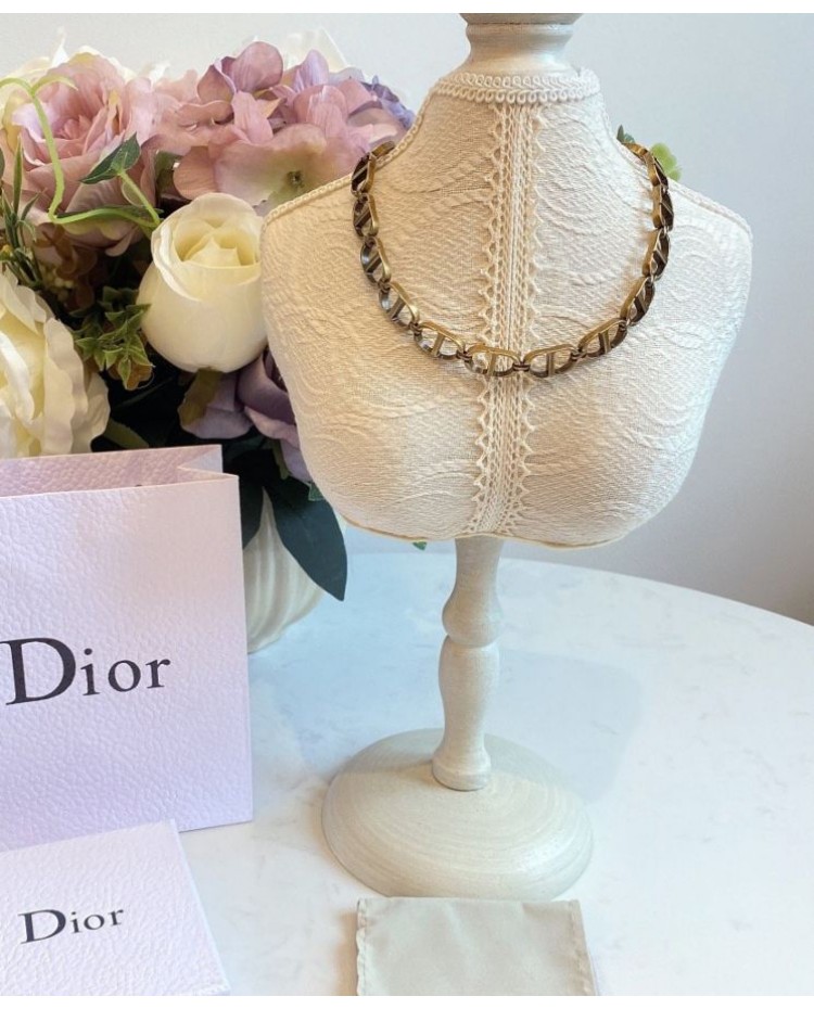 Dior 30 Montaigne Chain Link Choker Necklace Golden