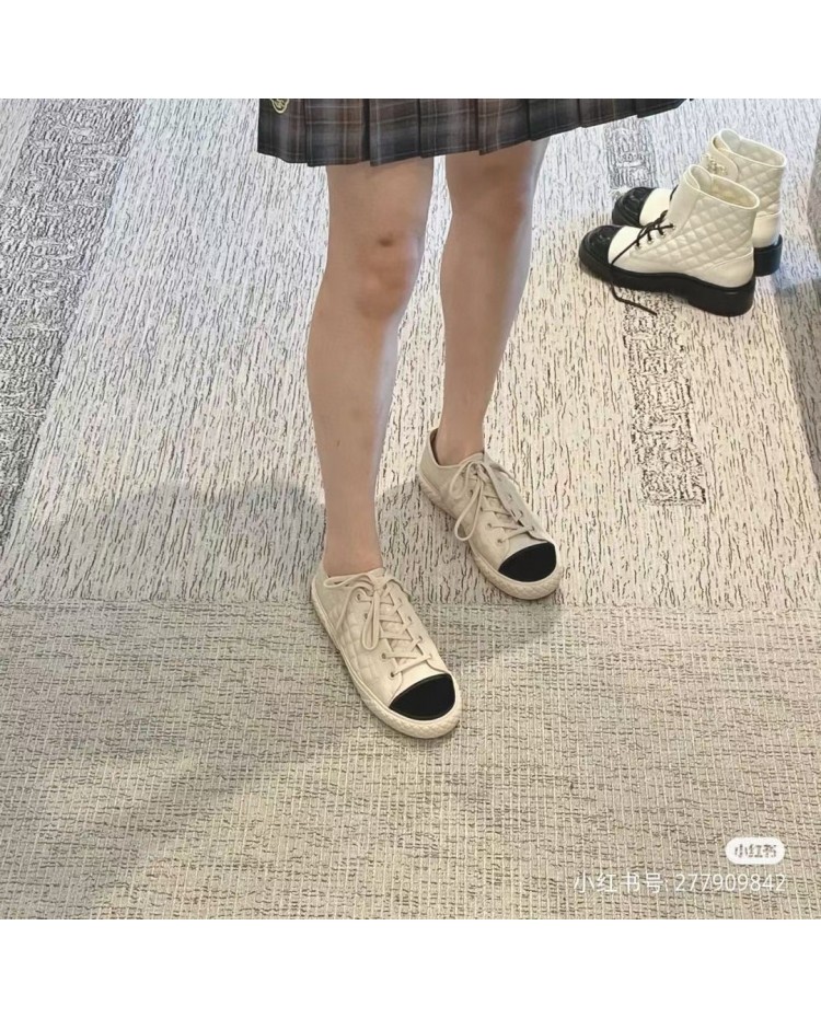 Creamy white wrinkled lacquer cowhide, contrast toe cap, imported black velvet, panda color matching, full of premium sense
