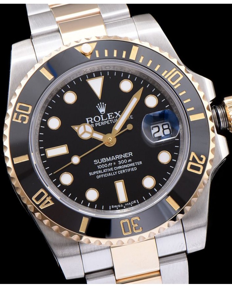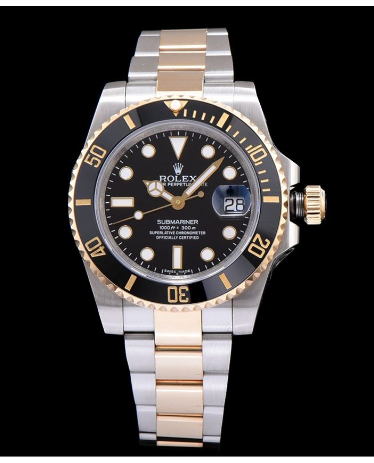 Rolex Submariner Two Tone Oyster Perpetual Watch Black