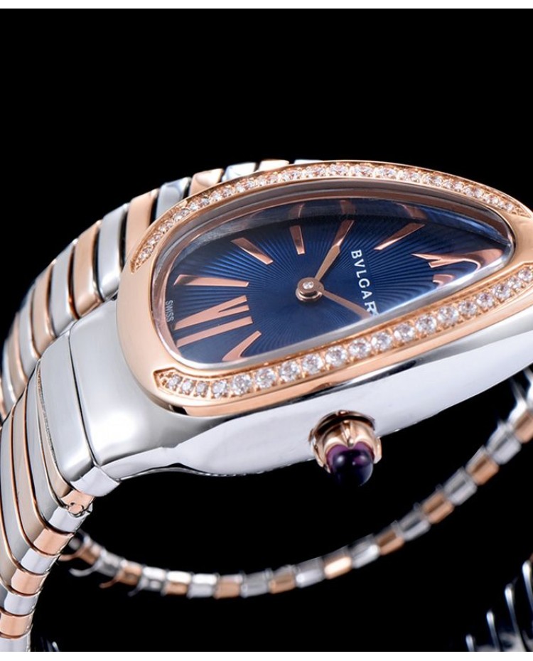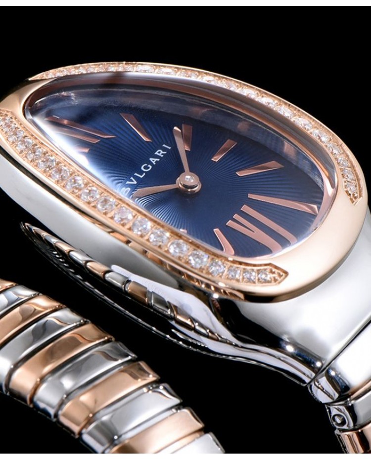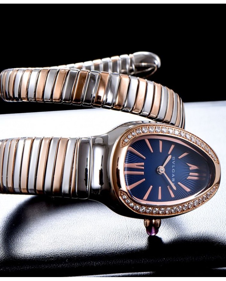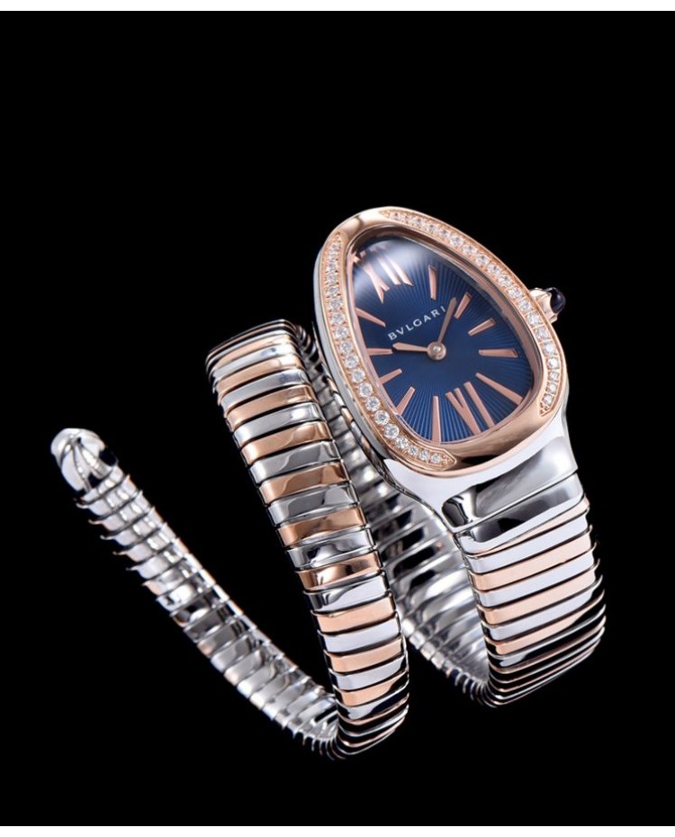 Bvlgari 18-carat pink-gold and steel watch Blue