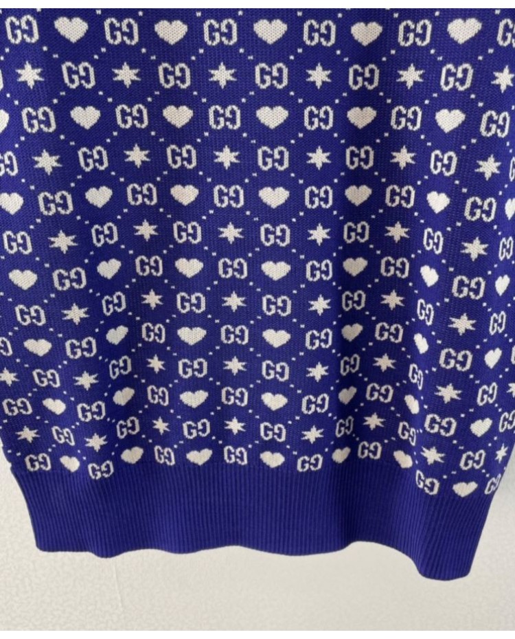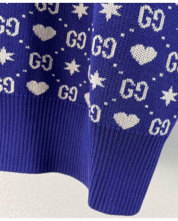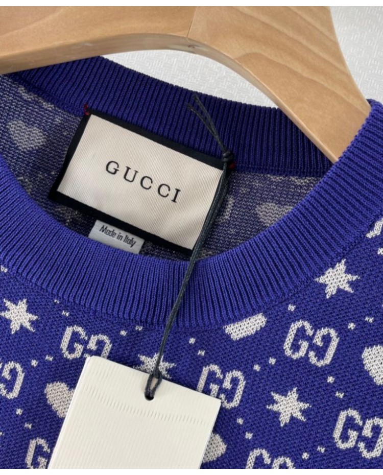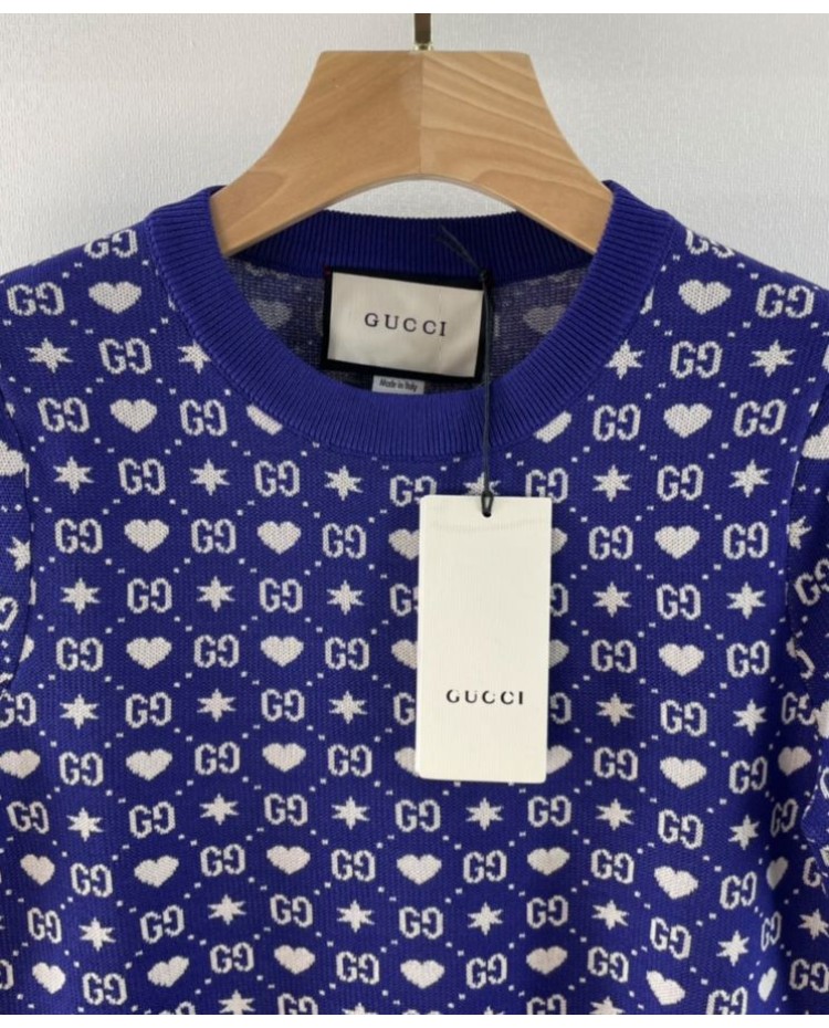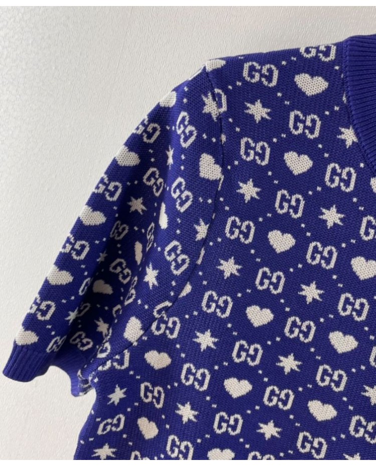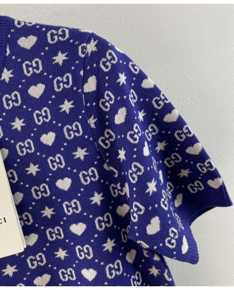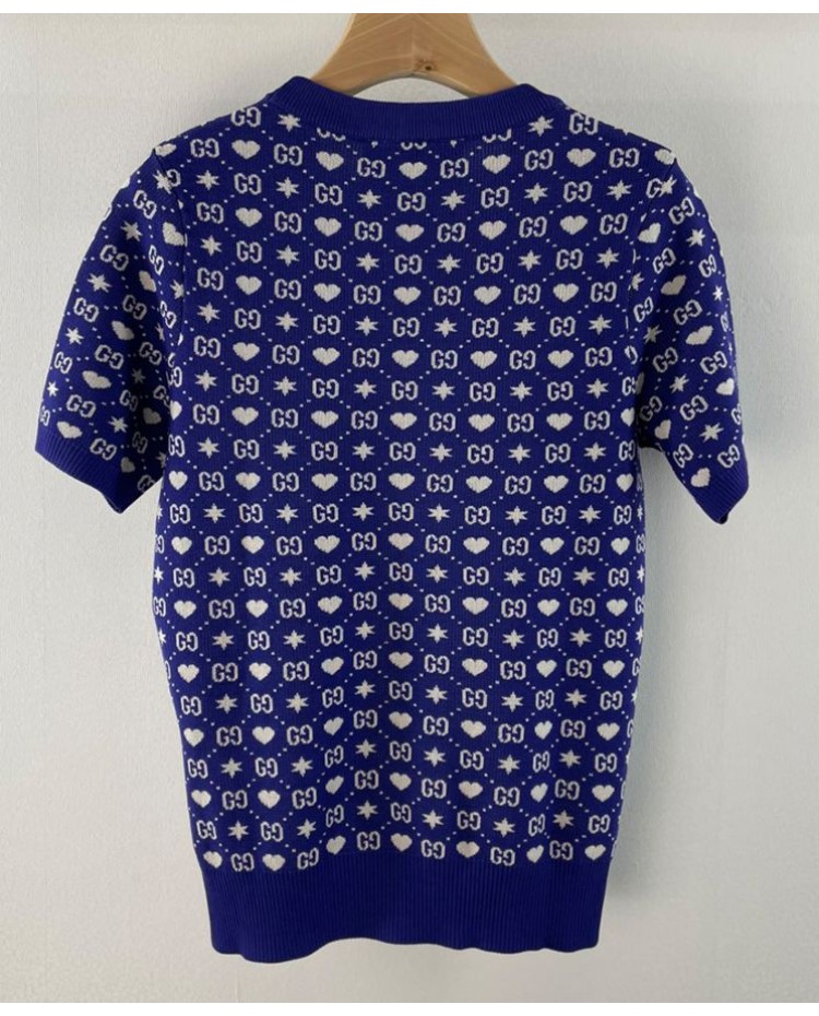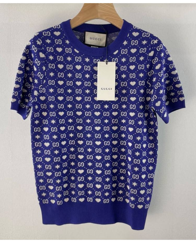 Reviews Over Gucci Women's Logo Jacquard Knitted T-shirt Dark Blue