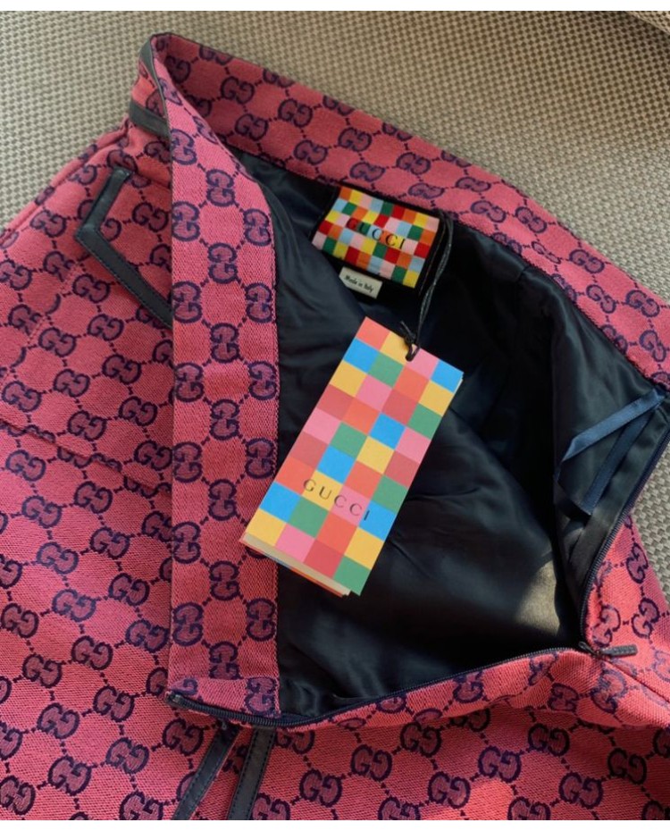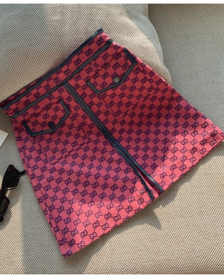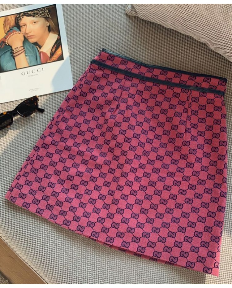 Gucci Women's Multicolor Logo Print Skirt Pink