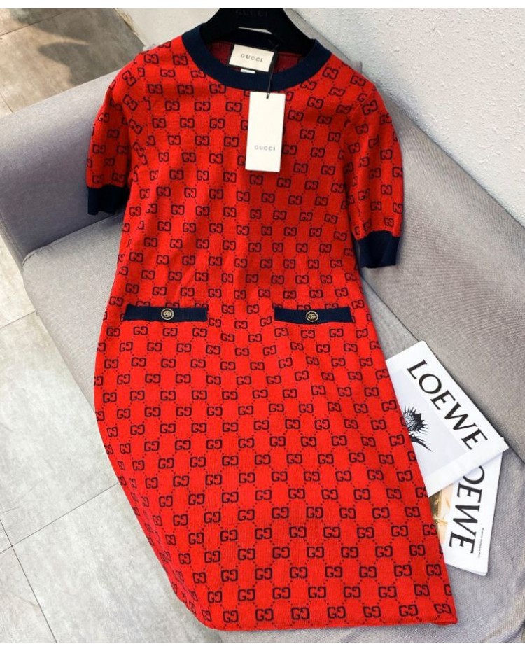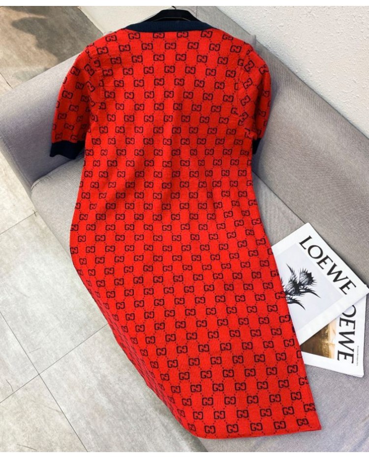 Gucci Women's Logo Jacquard Dress Red