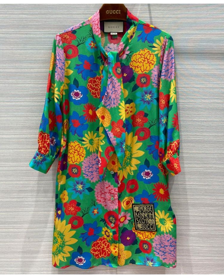 Reviews Over Gucci Women's Silk Print Dress Green