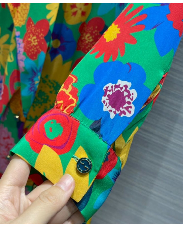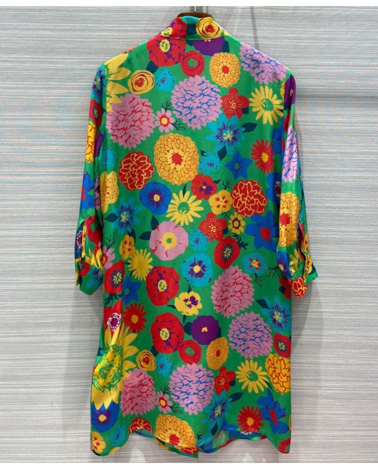 Gucci Women's Silk Print Dress Green