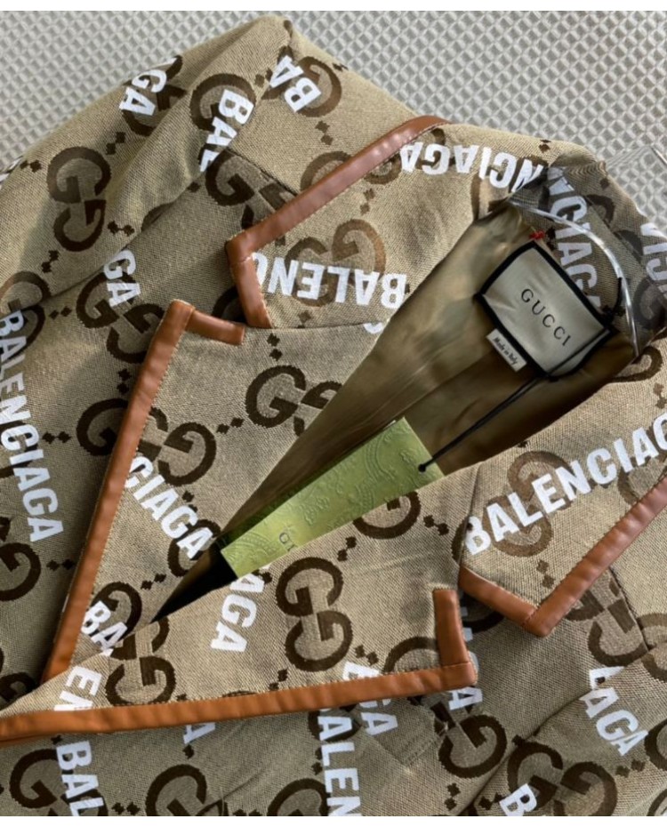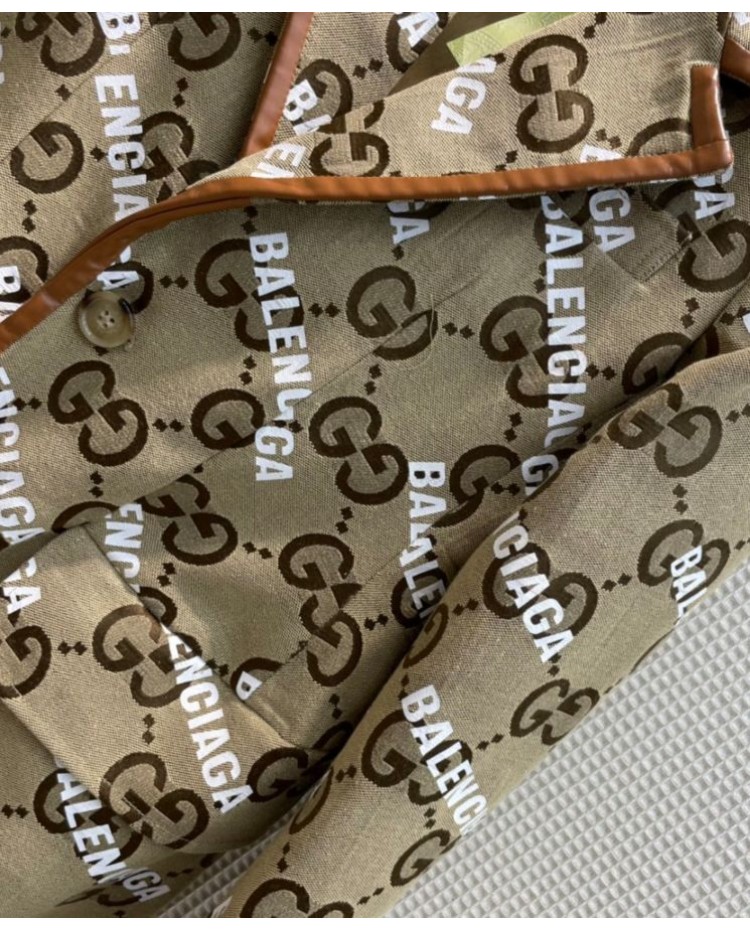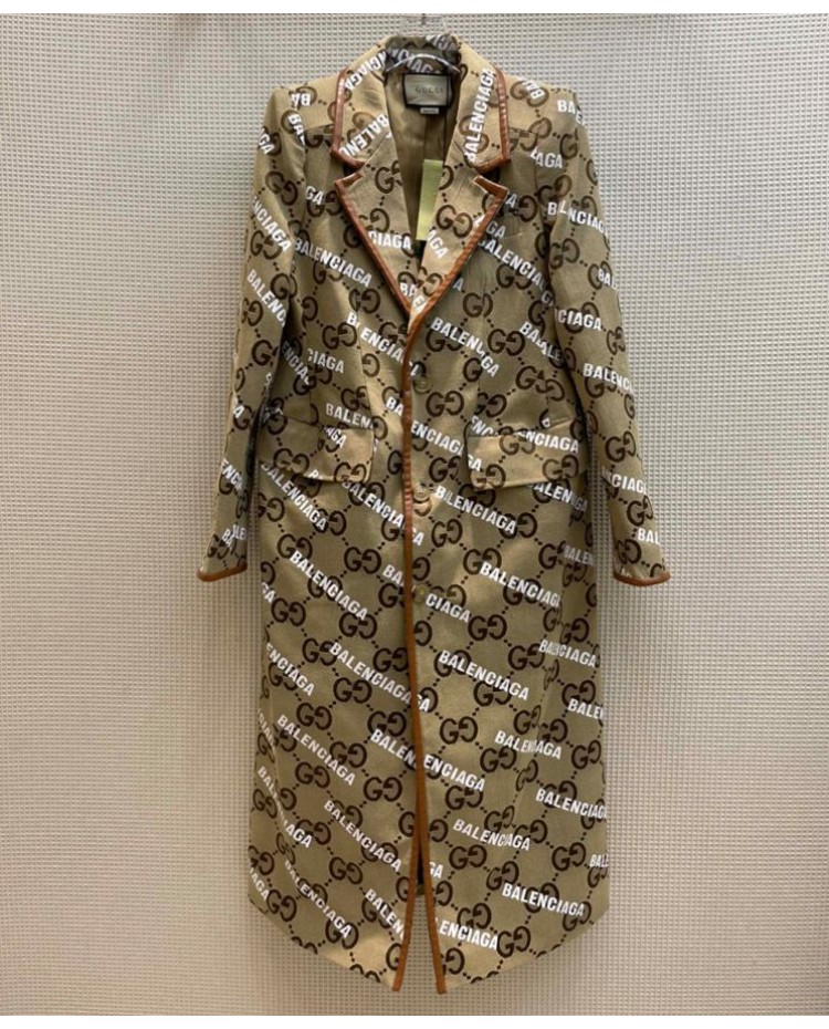 Gucci X Balenciaga Women's Logo Print Coat Coffee