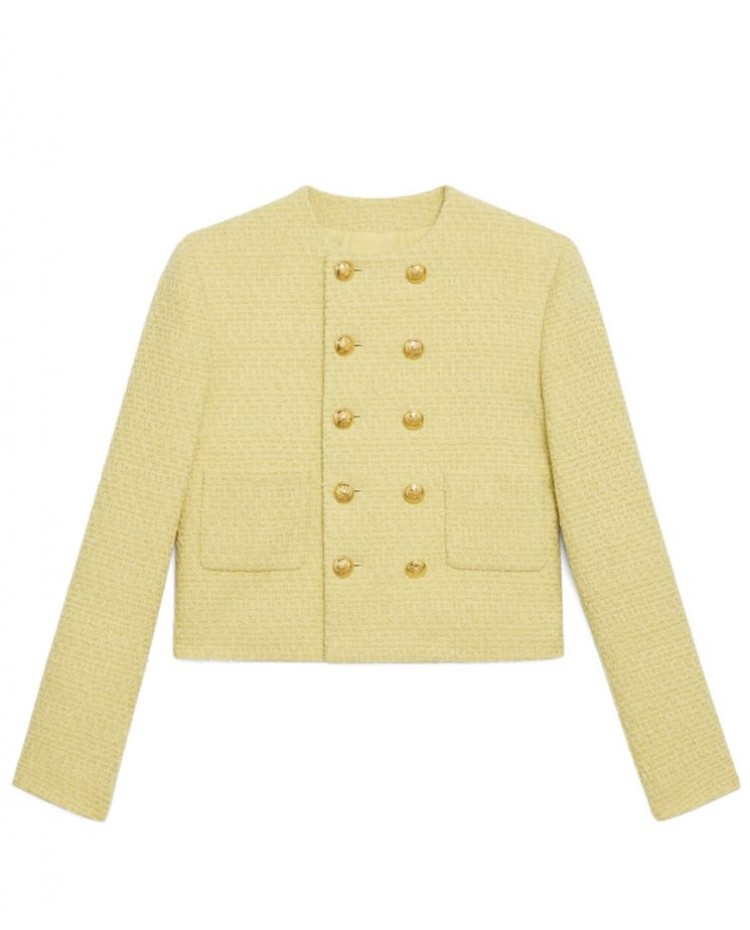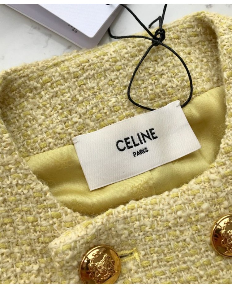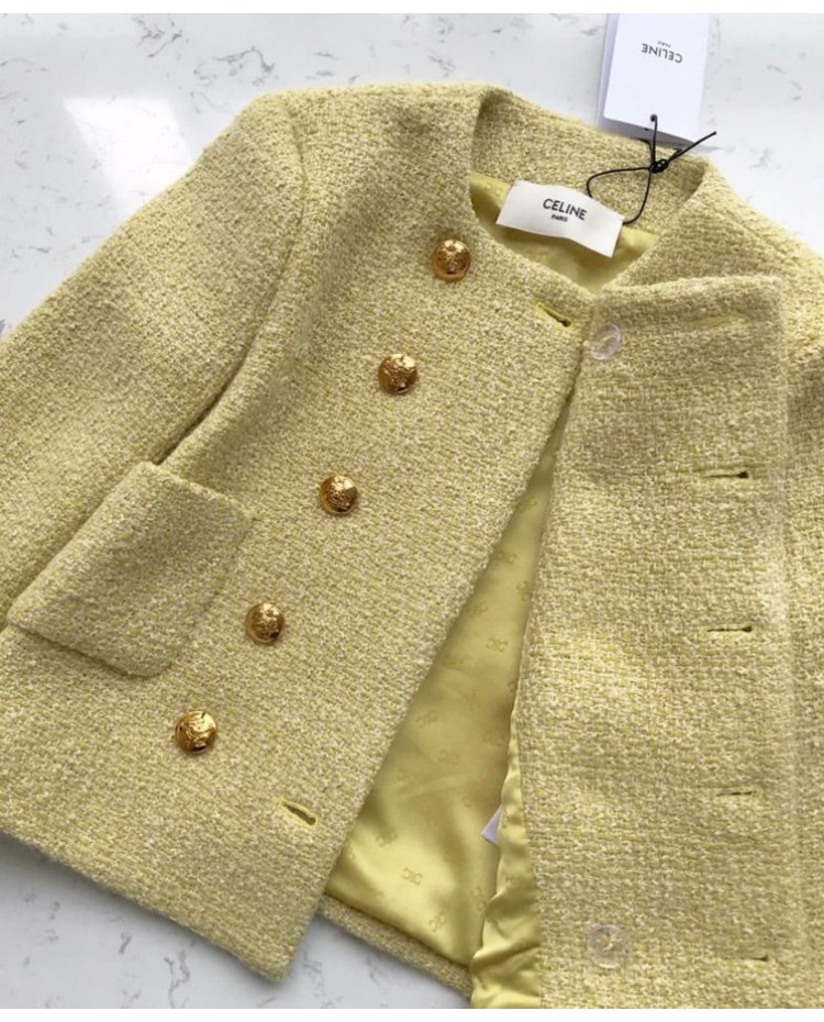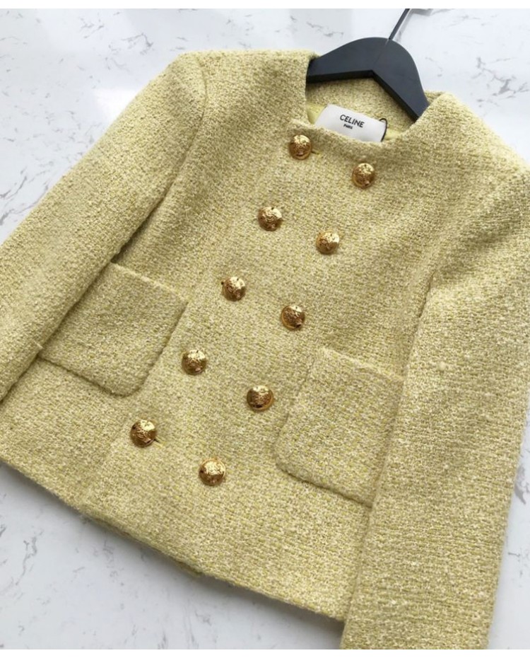 Reviews Over Celine Women's Double-breasted Woolen Coat Yellow