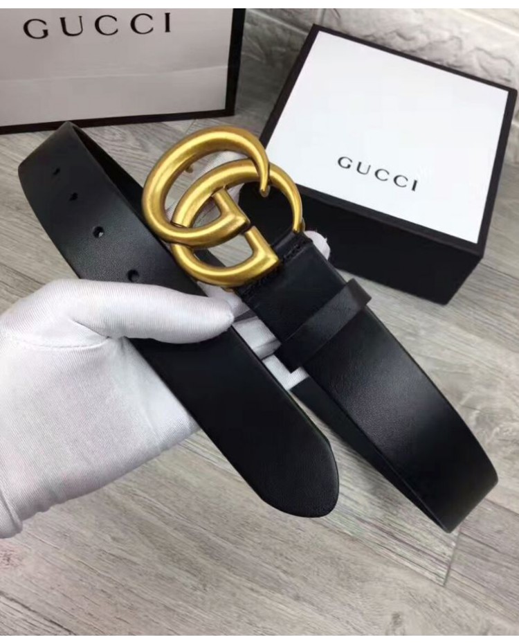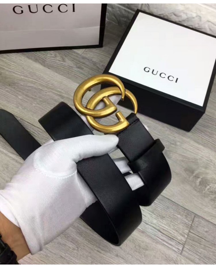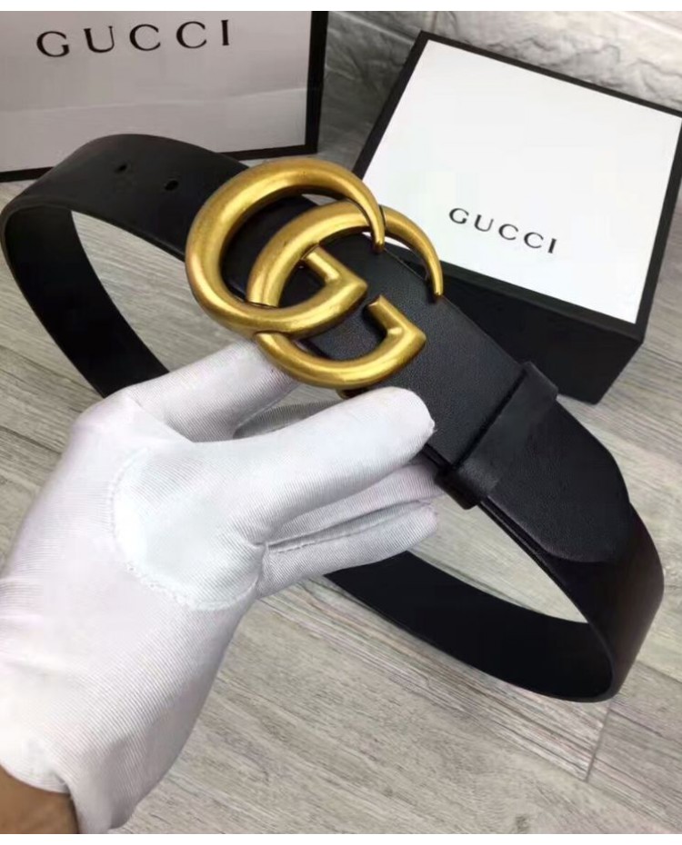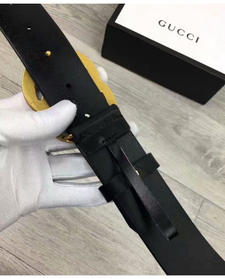 Reviews Over Gucci Leather belt with double G buckle Black