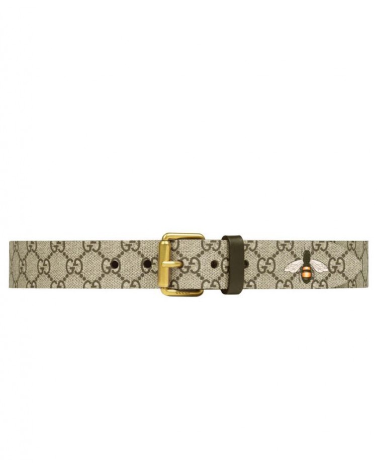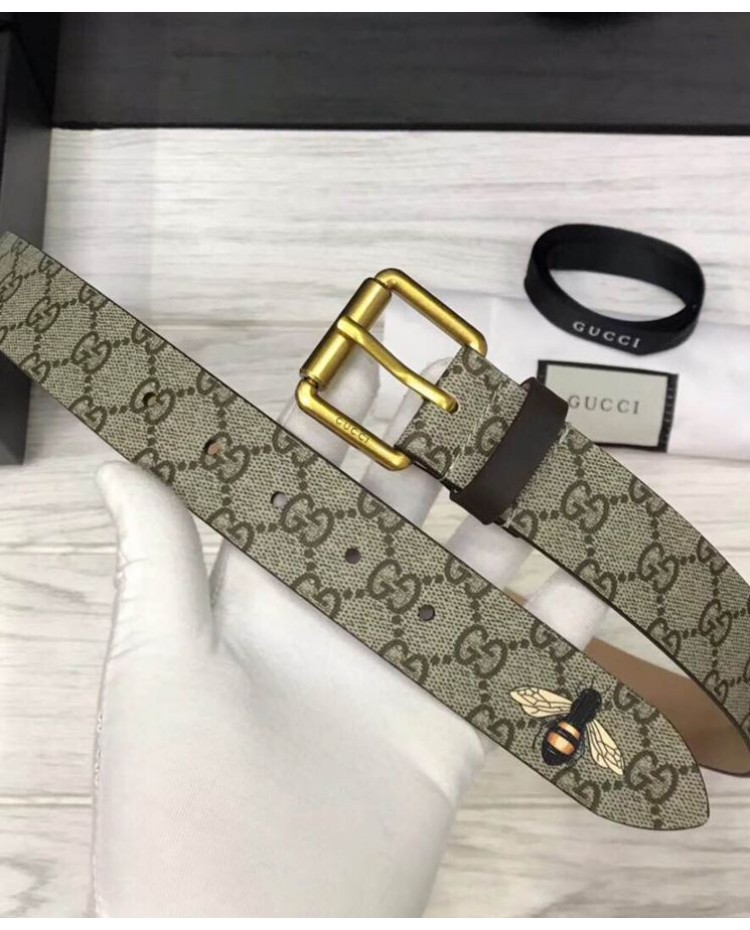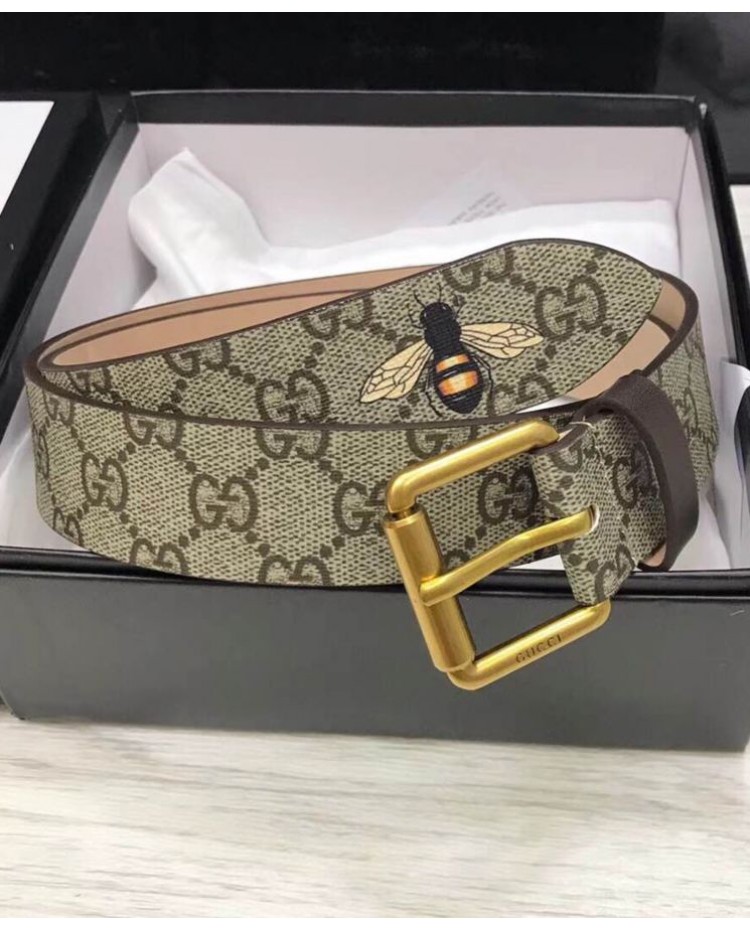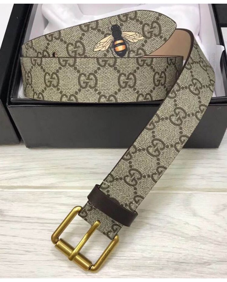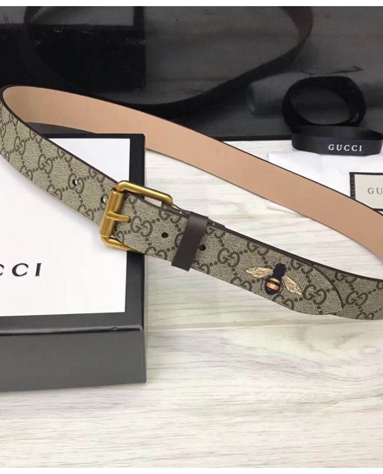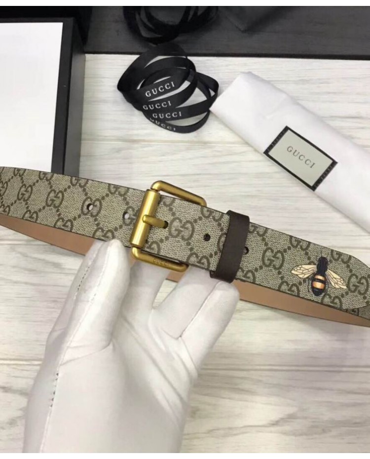 Gucci Bee print GG Supreme belt with Square buckle Coffee