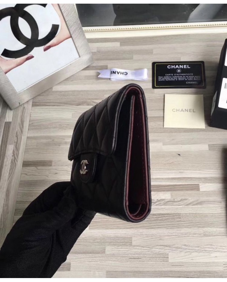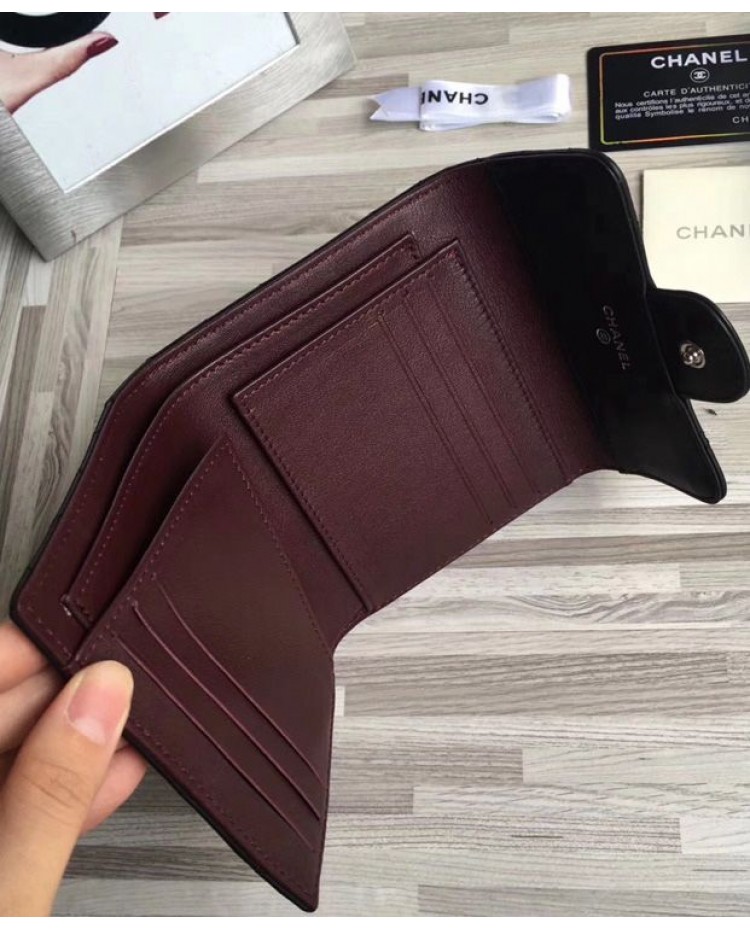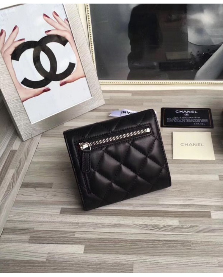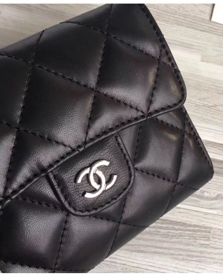 C-C Lambskin Compact Flap Wallet Black