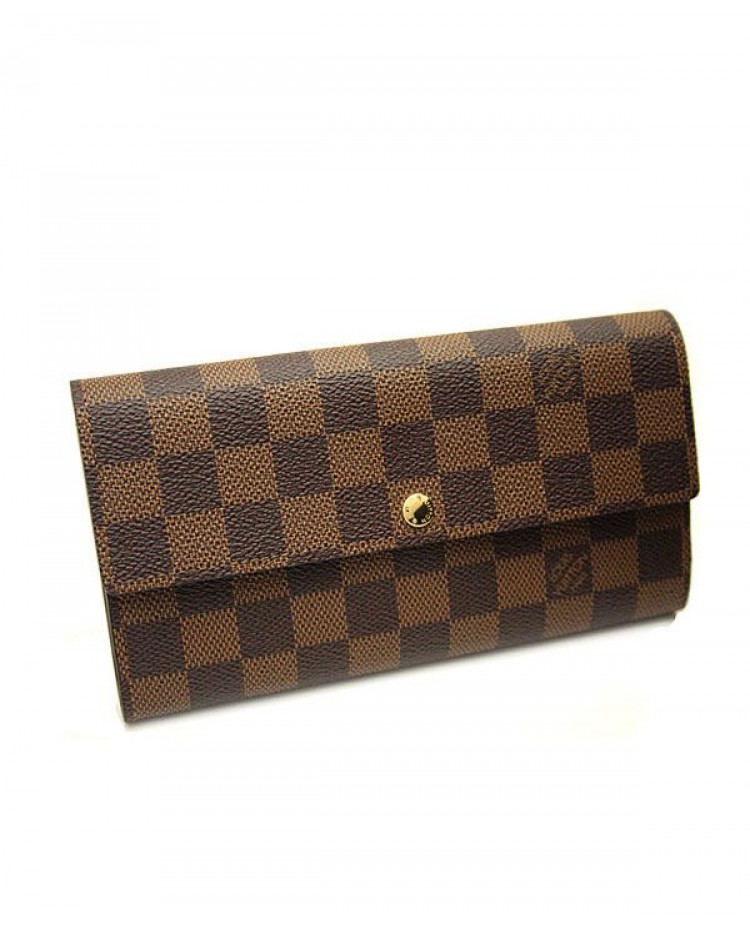Exterior | Damier canvas exterior with Louis Vuitton inscription and fold-over flap with snap button closure and two flat pockets on the flap where the snap button is placed |