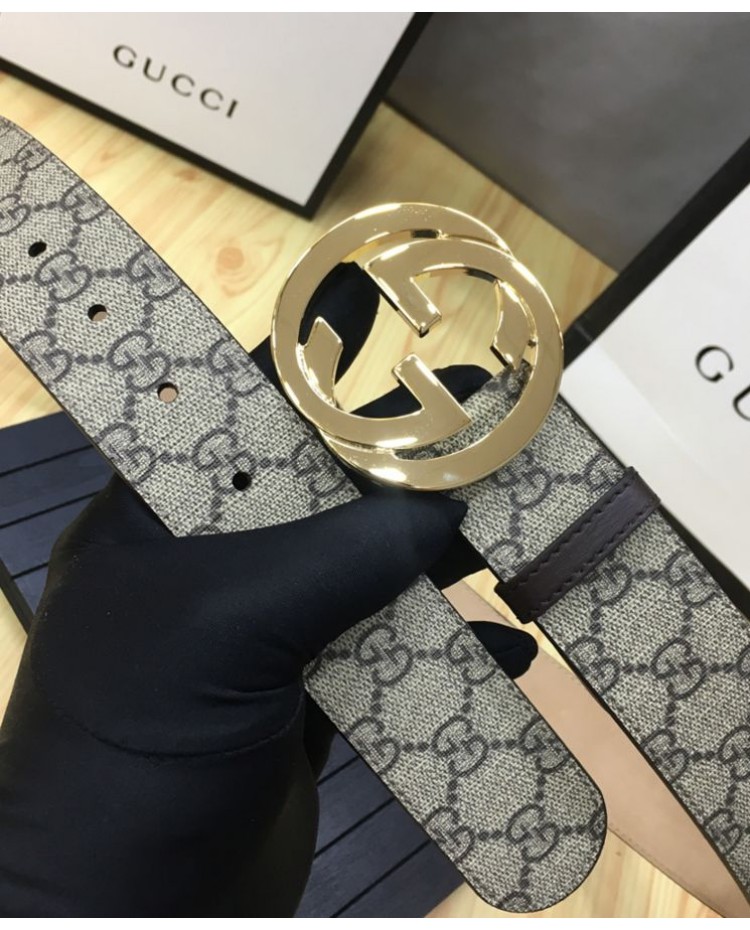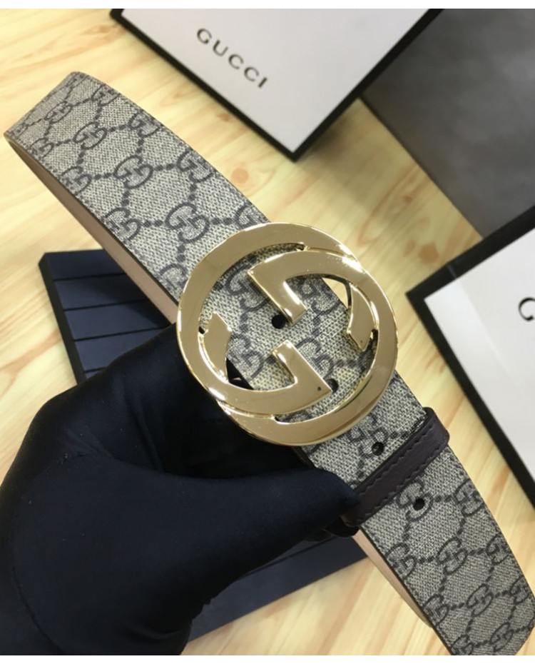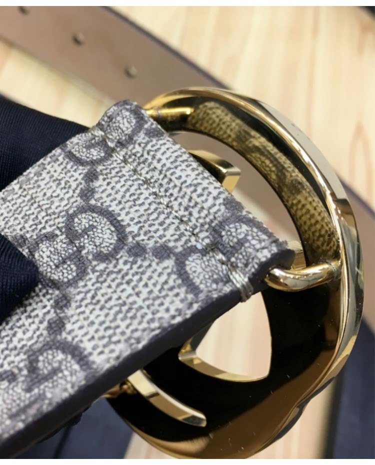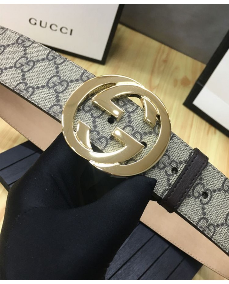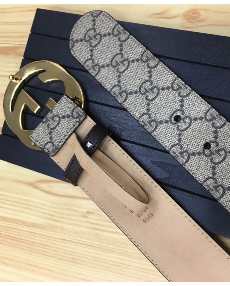 Reviews Over Gucci GG Supreme belt with G buckle 370543 Coffee