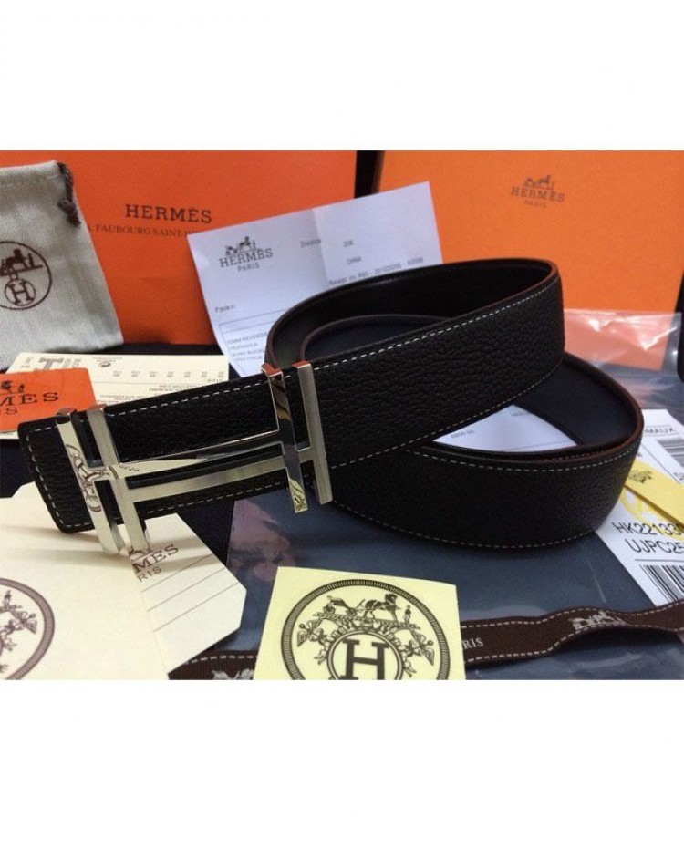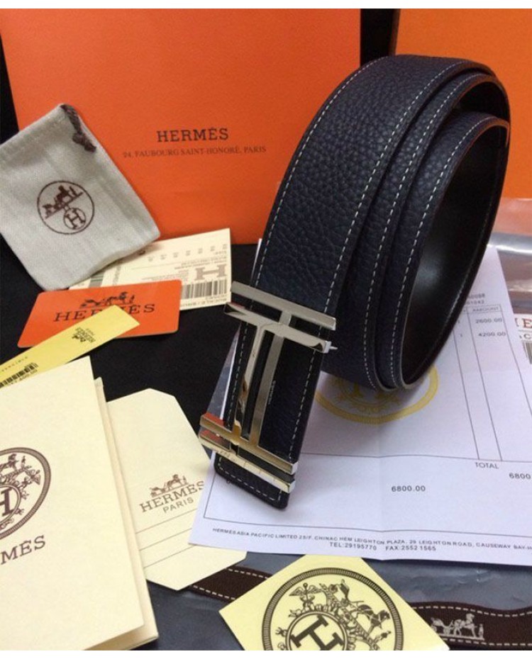 Exterior Cowhide leather exterior with white thread stitching and polished brass Hermes logo buckle clasp closure