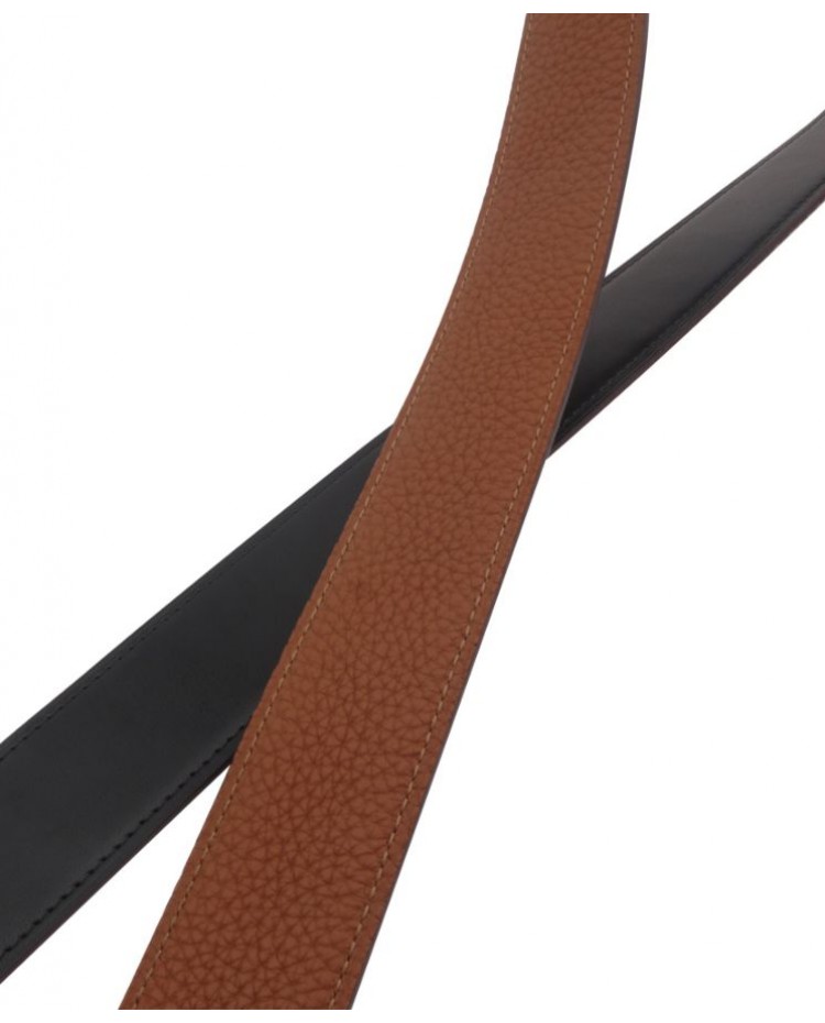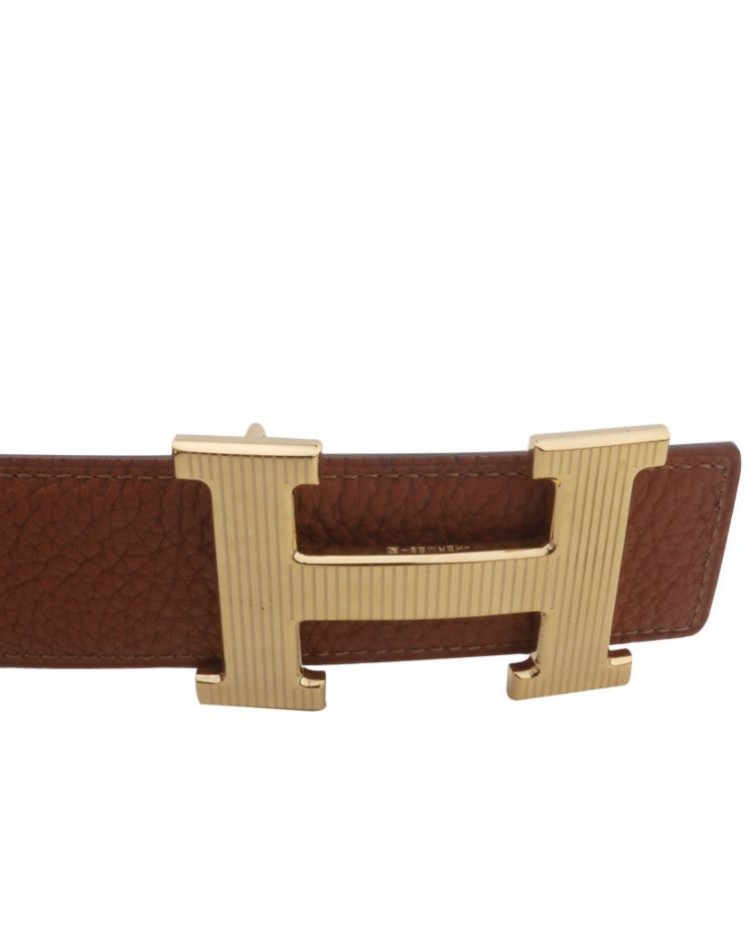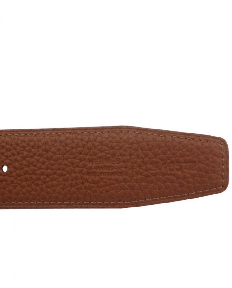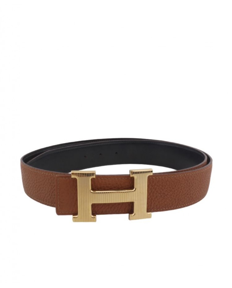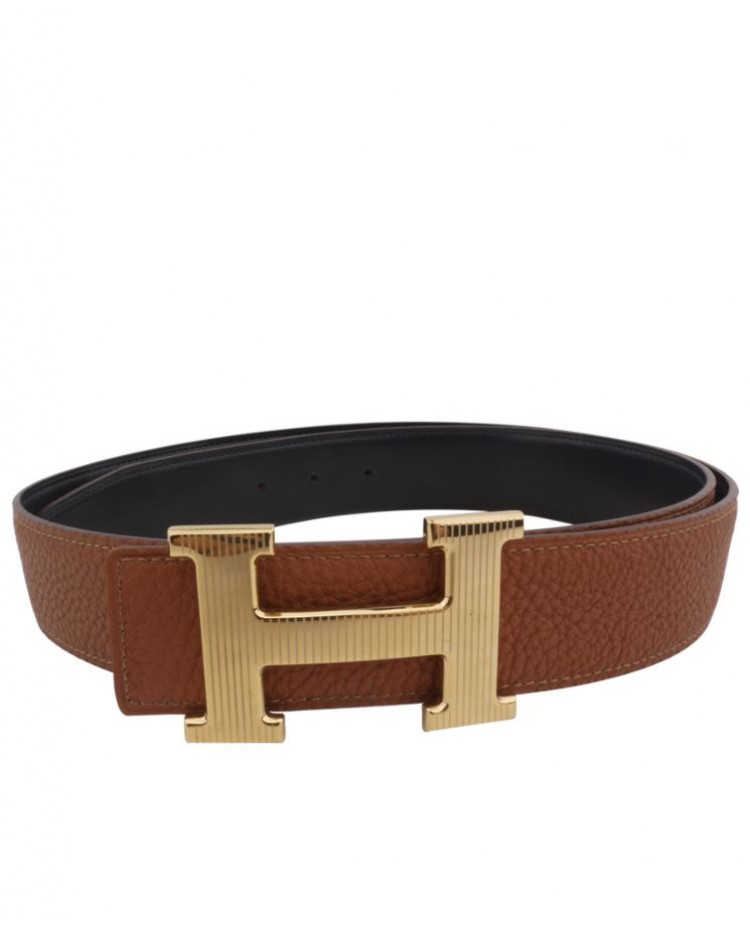 Exterior | Cowhide leather exterior with white thread stitching and polished brass Hermes logo buckle clasp closure |