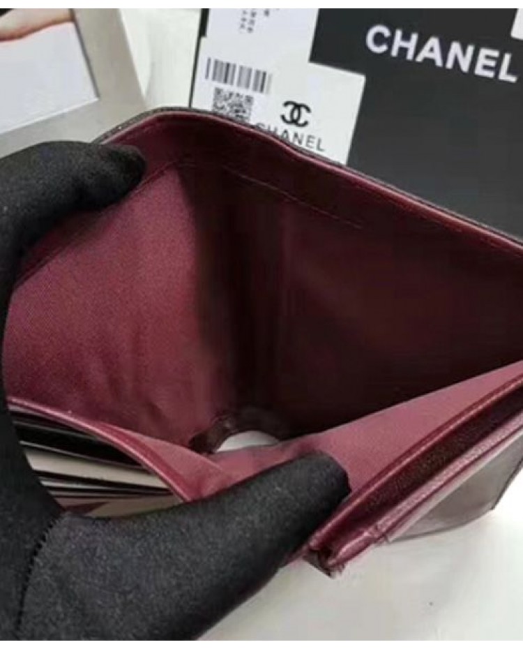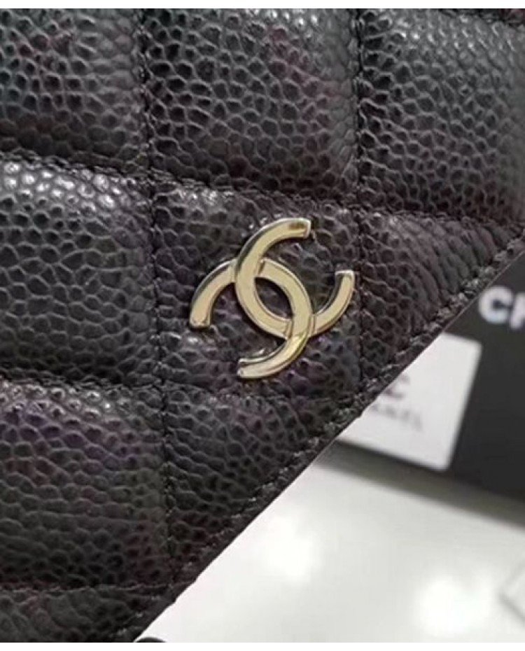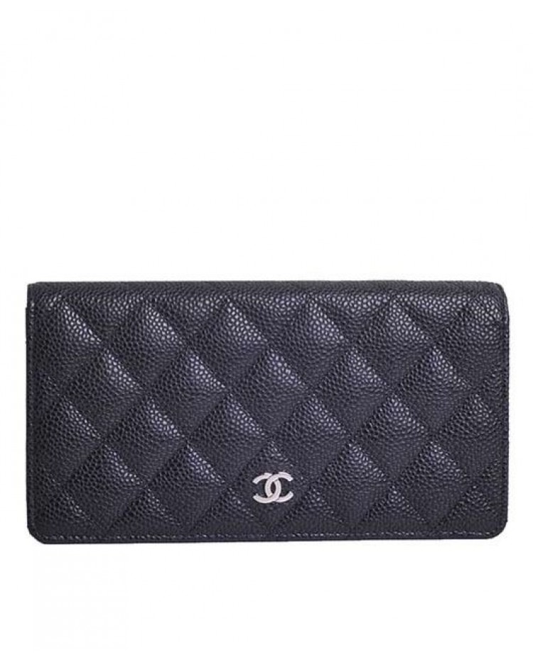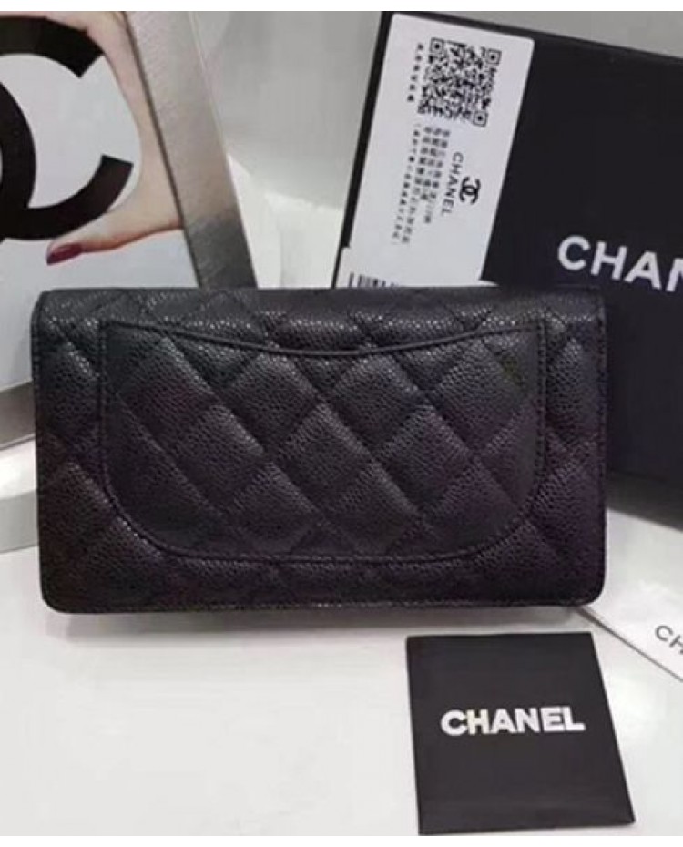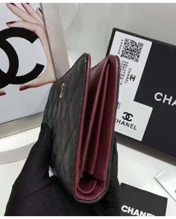 C-C Quilted Bi-fold Wallet in Caviar Black
