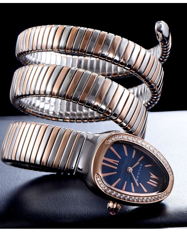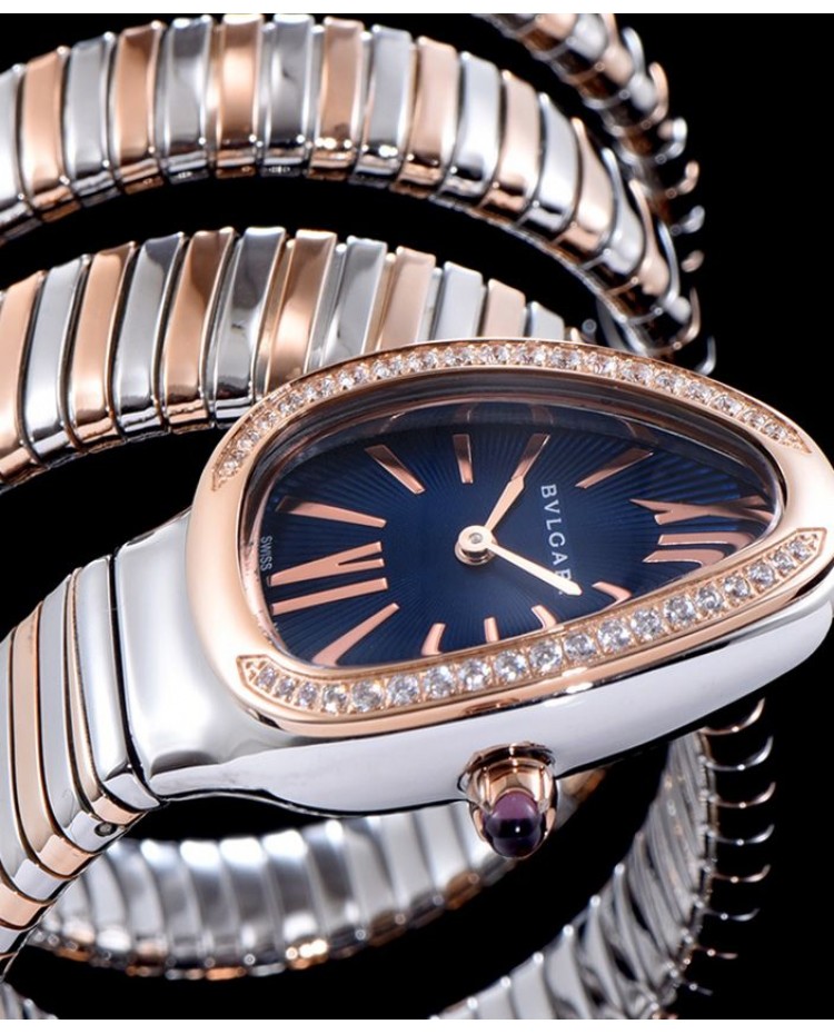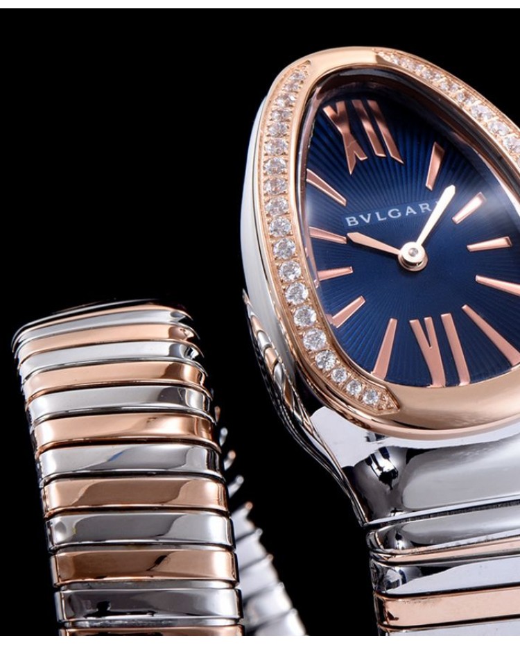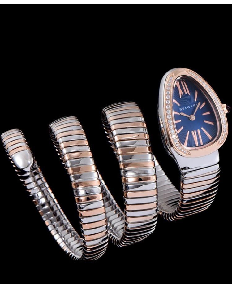 Bvlgari 35mm two tone stainless steel diamond watch Blue