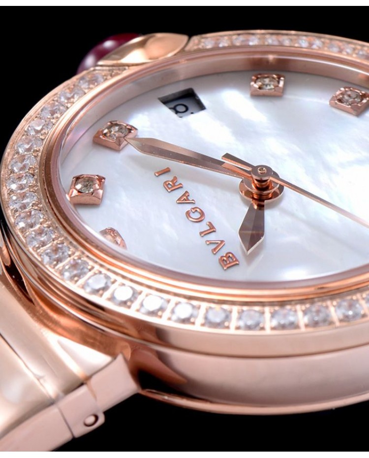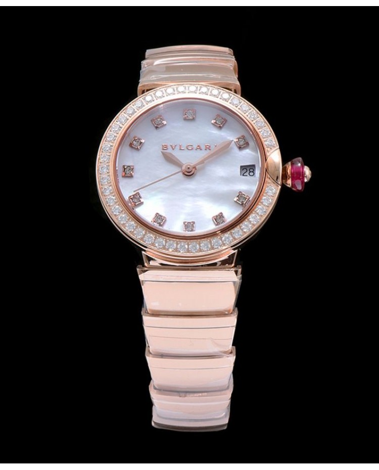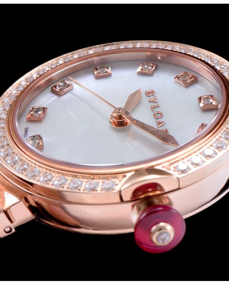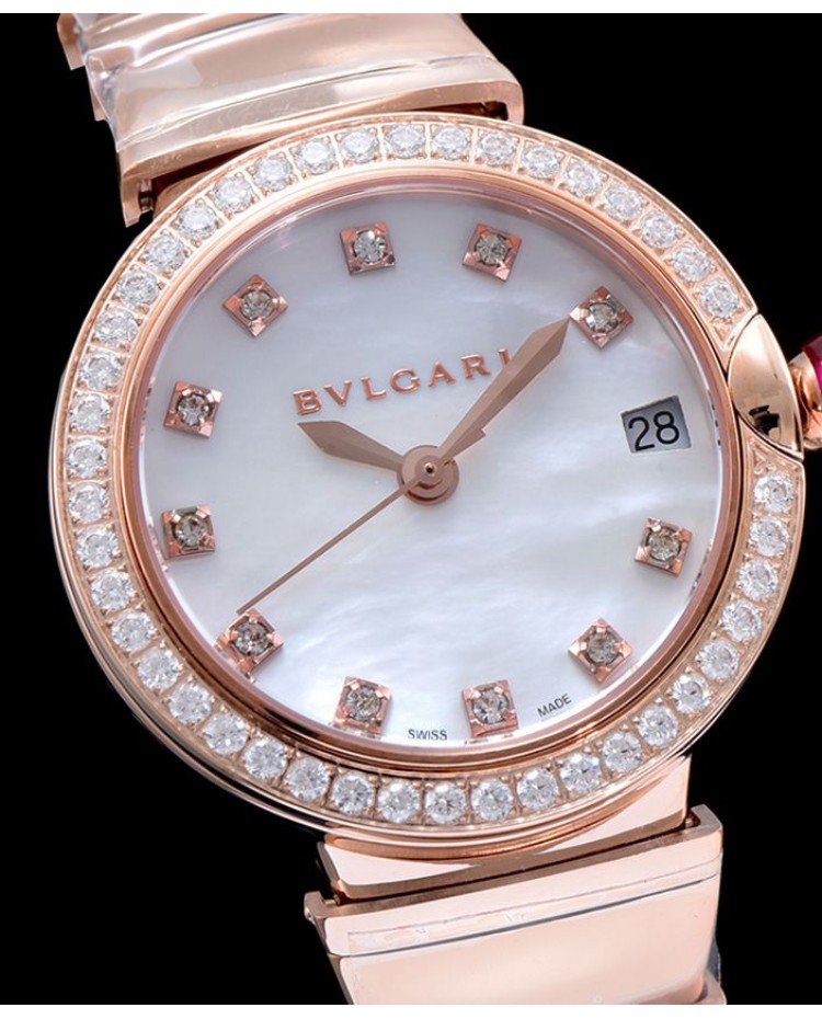 Reviews Over Bvlgari Lvcea White Dial Diamond Hour Markings Rose Gold Case With Diamonds Two Tone Bracelet White